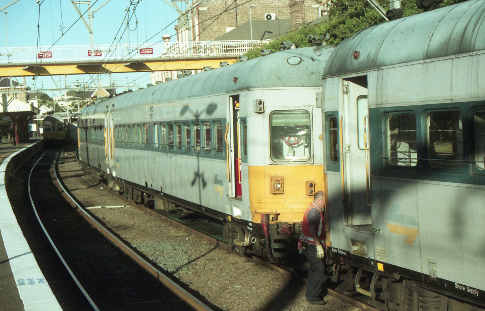 Two 620 class railmotor sets being uncoupled on the engine road at Newcastle, NSW