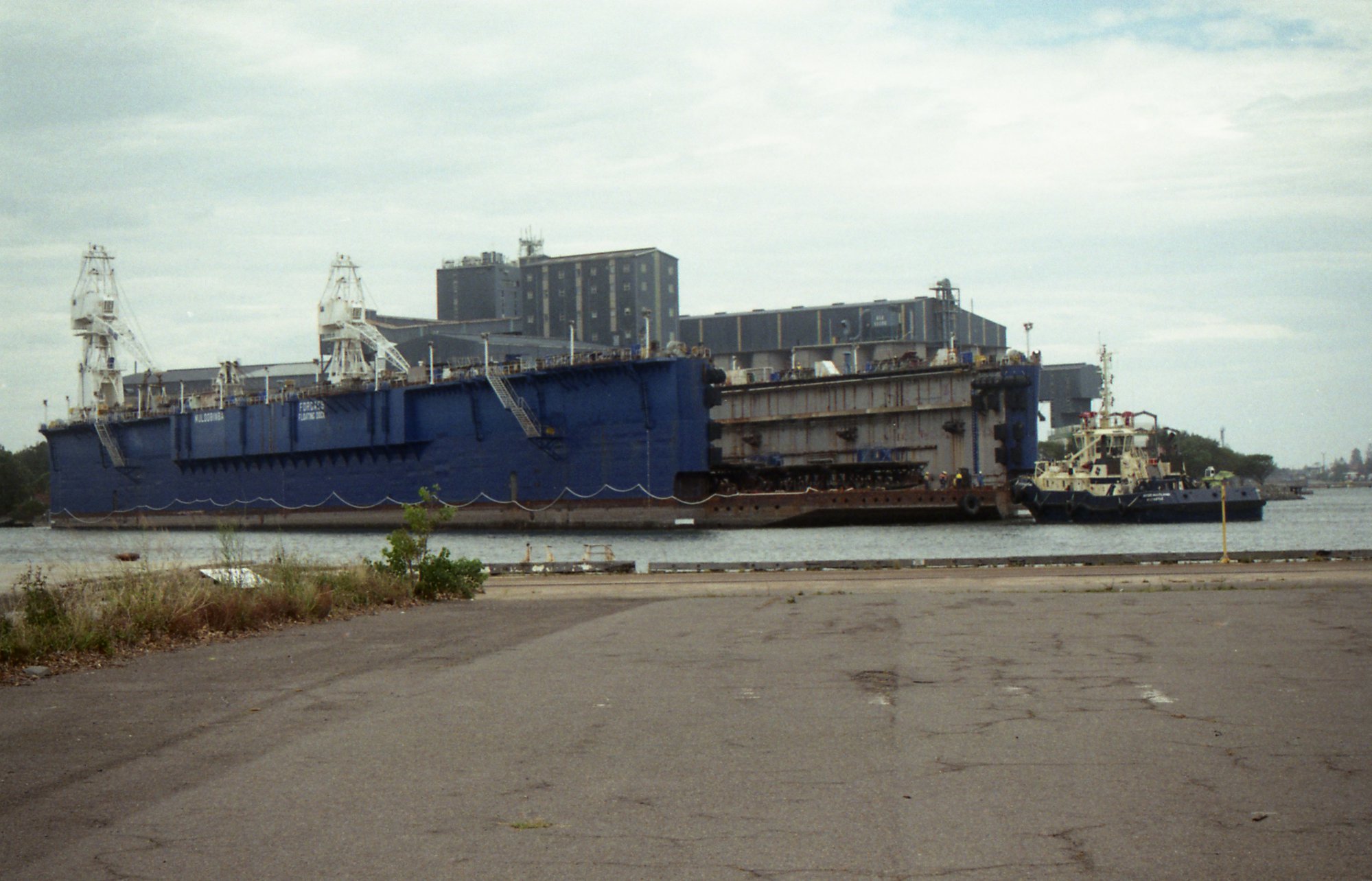 The floating dock, Muloobinba, just before being towed away