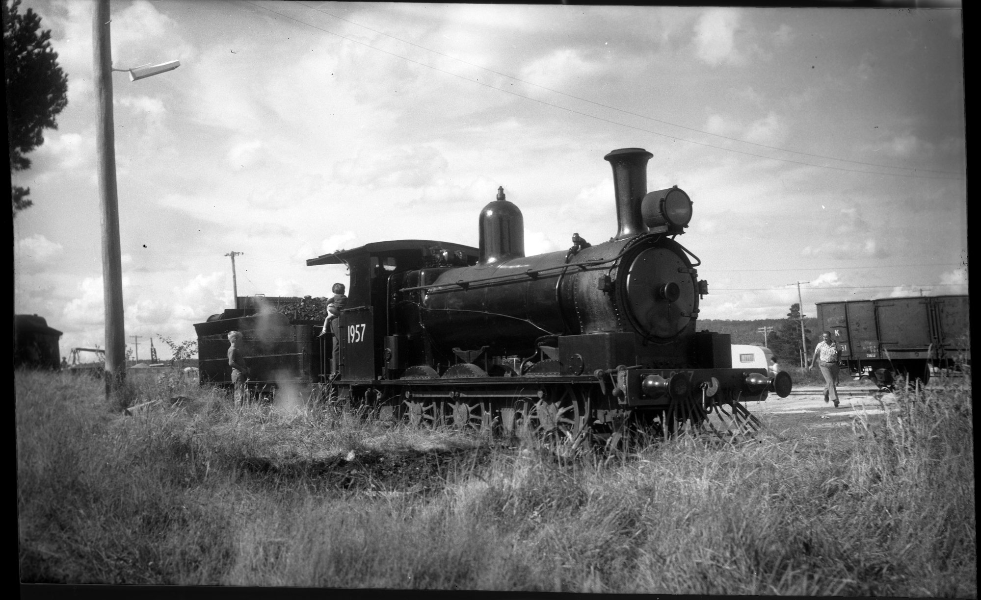 NSWGR Z19 Class locomotive, no. 1957, fitted with cowcatcher, Baldwin tender, unidentified location, [n.d.], [ARHSBox070_1950]. Living Histories, accessed 14/02/2026, https://livinghistories.newcastle.edu.au/nodes/view/85897