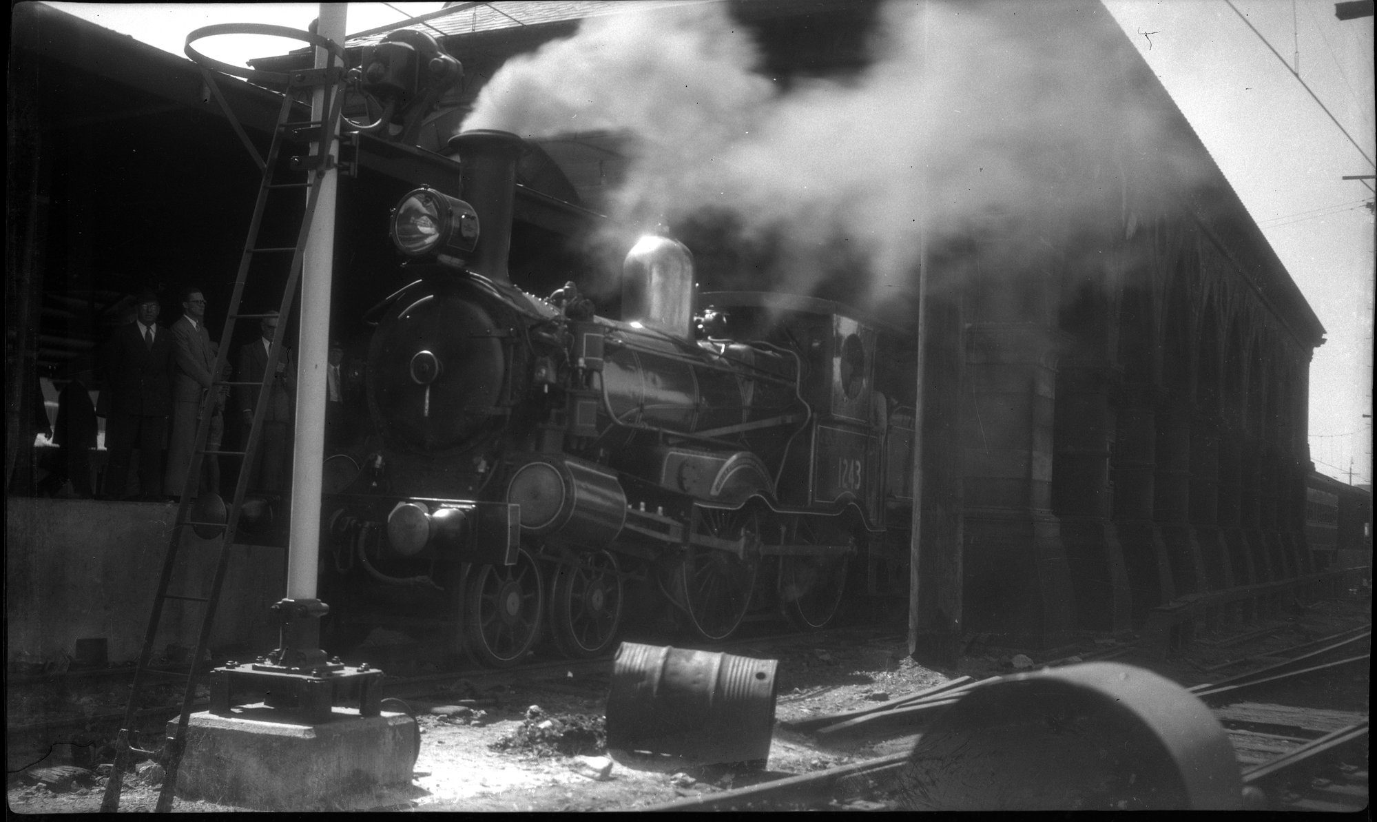 NSWGR Z12 Class locomotive, no. 1243, at Regent St Mortuary Station, [n.d.], [ARHSBox070_1976]. Living Histories, accessed 16/04/2026, https://livinghistories.newcastle.edu.au/nodes/view/85923