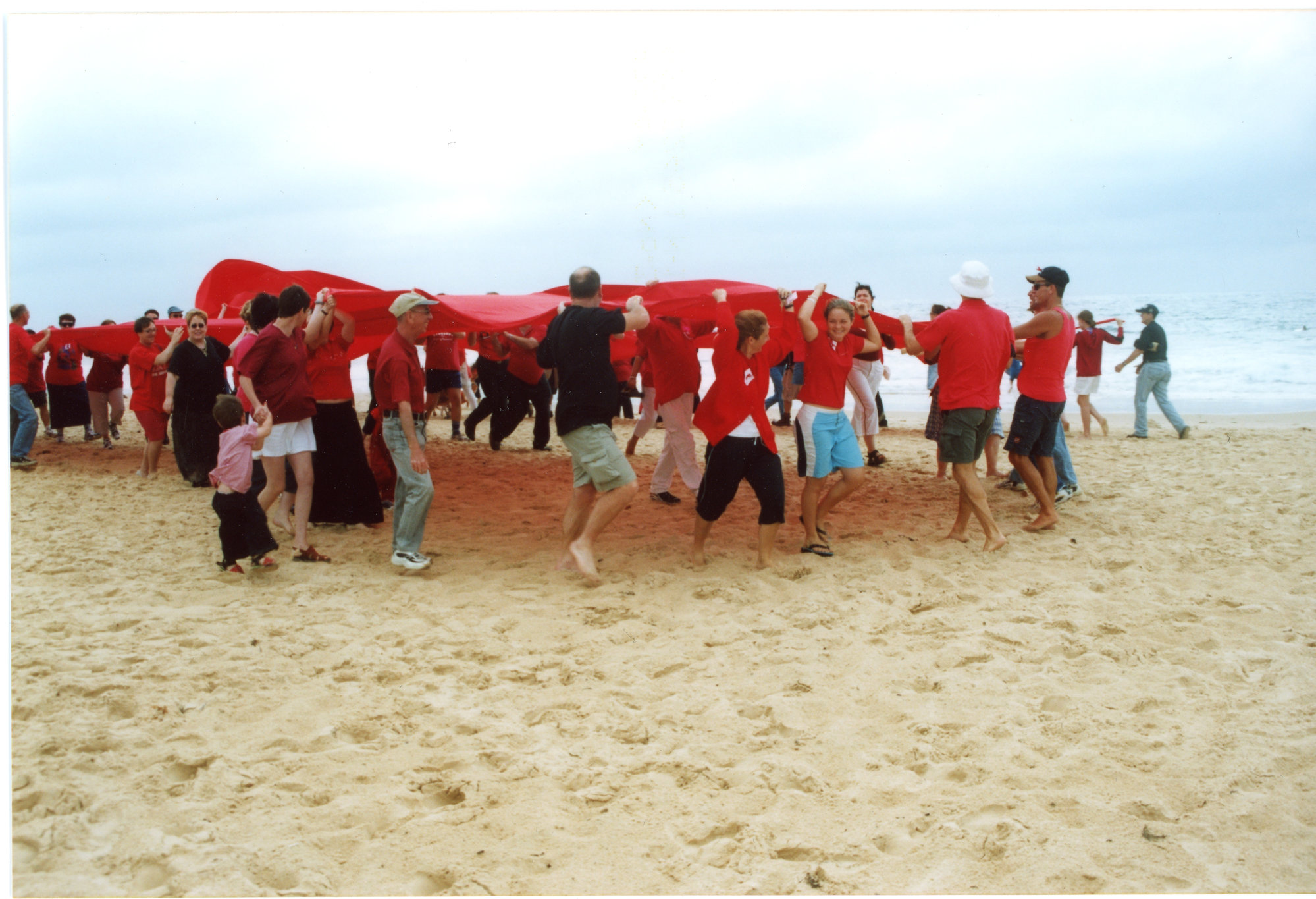 Giant red ribbon for World AIDS Day Newcastle Beach (2001), [C3309_RNHphotos_263]. Living Histories, accessed 13/02/2026, https://livinghistories.newcastle.edu.au/nodes/view/86182