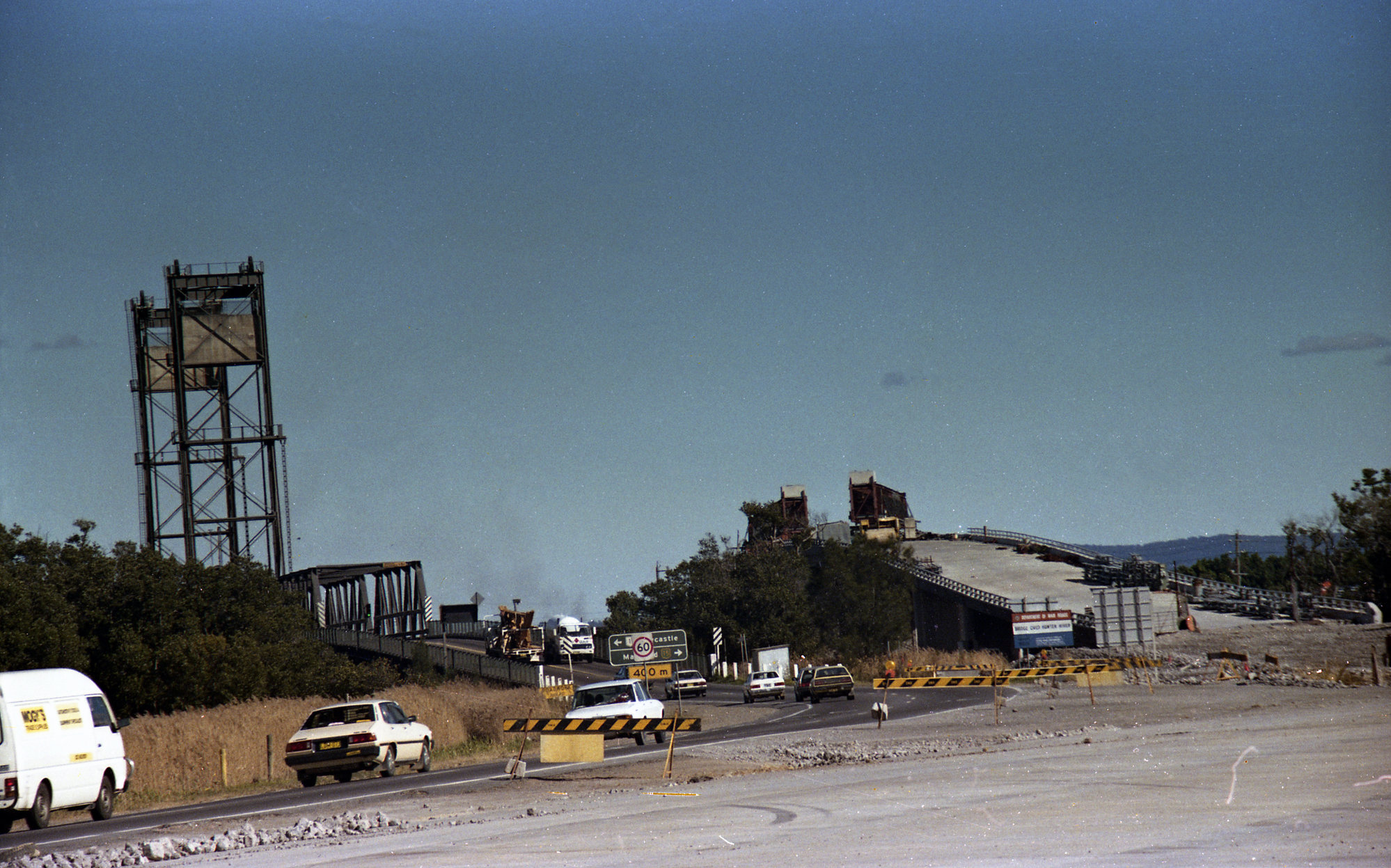 Sternbeck, Percival William, 1921-2004, Bridge construction, Hexham, NSW, July 1986 (Between 1st July 1986 and 31st July 1986), [Sternbeck_Bk9_Train-Hexham-July-1986-017]. Living Histories, accessed 06/03/2026, https://livinghistories.newcastle.edu.au/nodes/view/86348