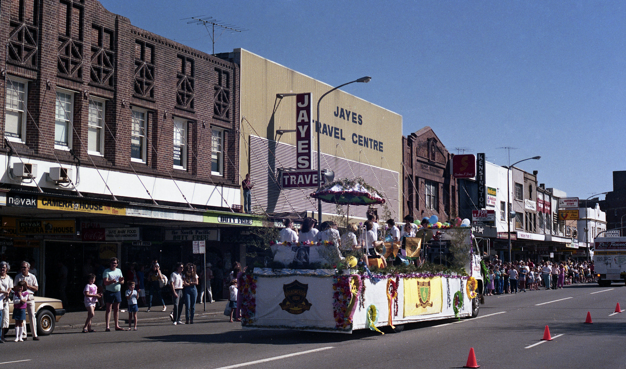 Sternbeck, Percival William, 1921-2004, Broadmeadow High School float, Mattara procession, Newcastle, NSW, September 1986 (Between 1st September 1986 and 30th September 1986), [Sternbeck_Book12_Sep_1986_000]. Living Histories, accessed 12/03/2026, https://livinghistories.newcastle.edu.au/nodes/view/86598