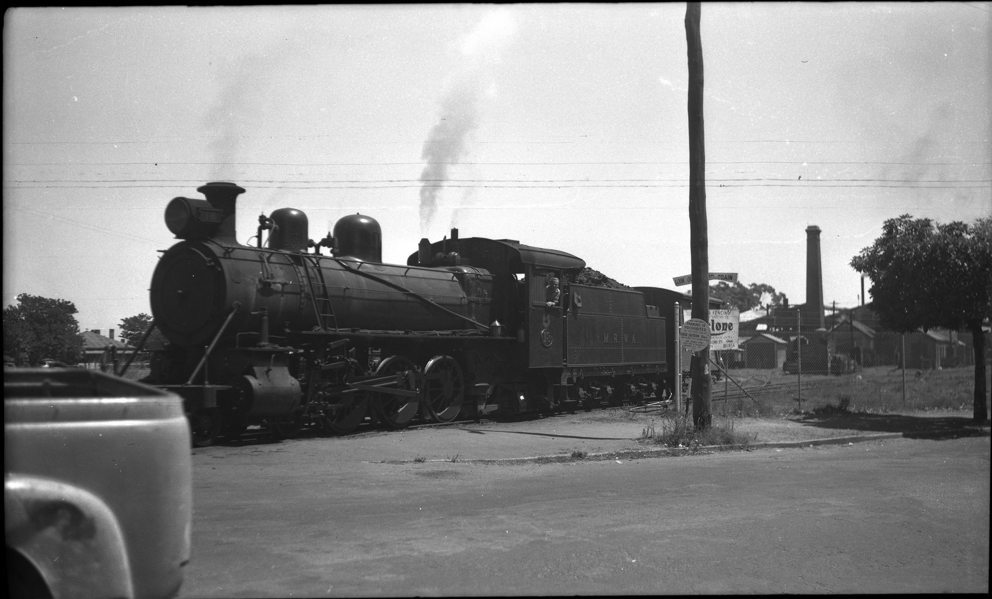 MRWA C Class, no. 18, unidentified man in cab window, Midland Junction, W.A., [n.d.]