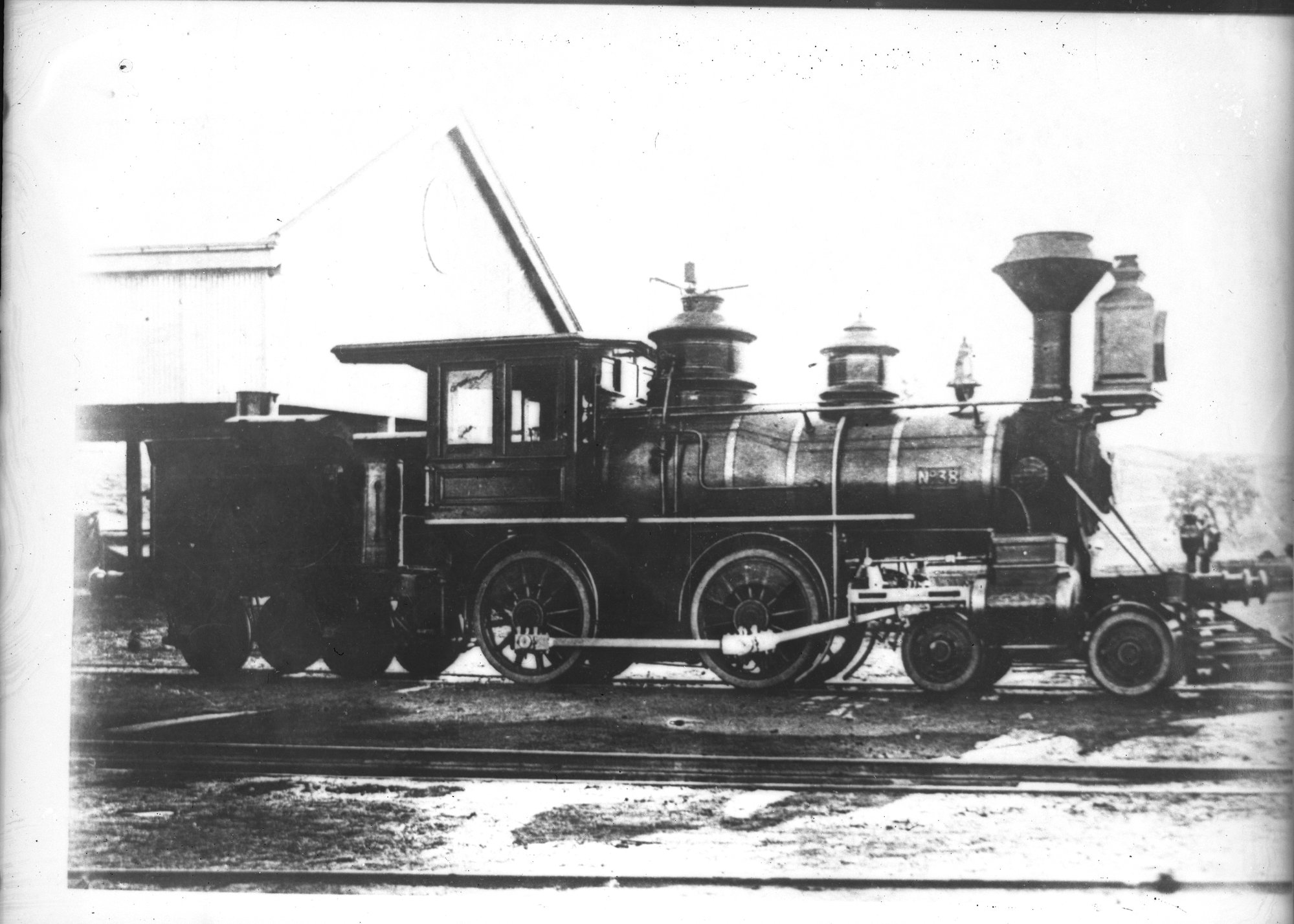 Queensland Railways A12 small class, no. 38, c. 1878, unidentified location, [ARHSBox091_2411]. Living Histories, accessed 20/03/2026, https://livinghistories.newcastle.edu.au/nodes/view/87043