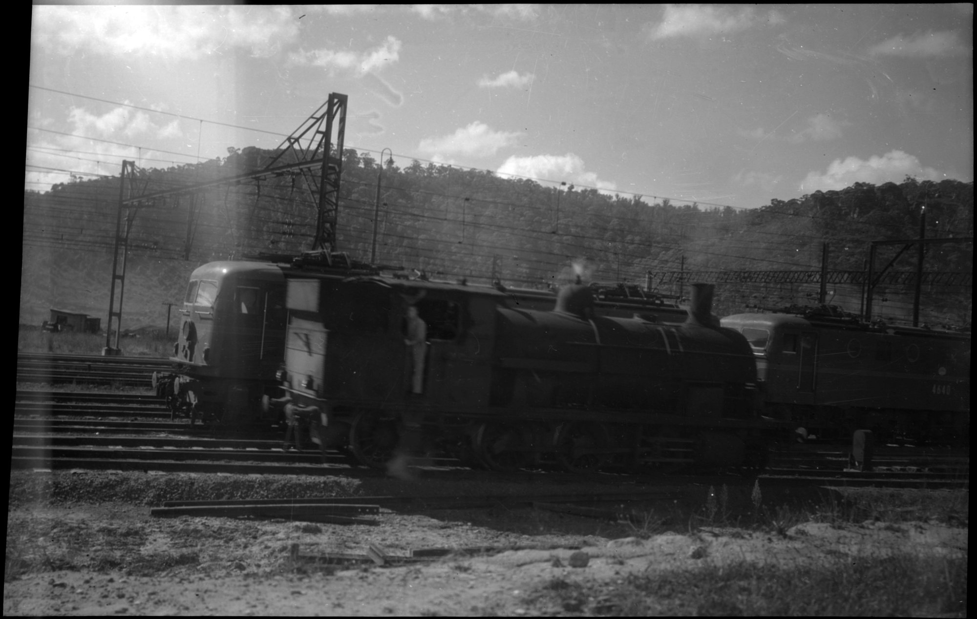 NSWGR Z26 Class, number illegible, with 46 Class no. 4640 and another 46 Class, Lithgow, NSW, [n.d.], [ARHSBox100_2507]. Living Histories, accessed 16/01/2026, https://livinghistories.newcastle.edu.au/nodes/view/87230