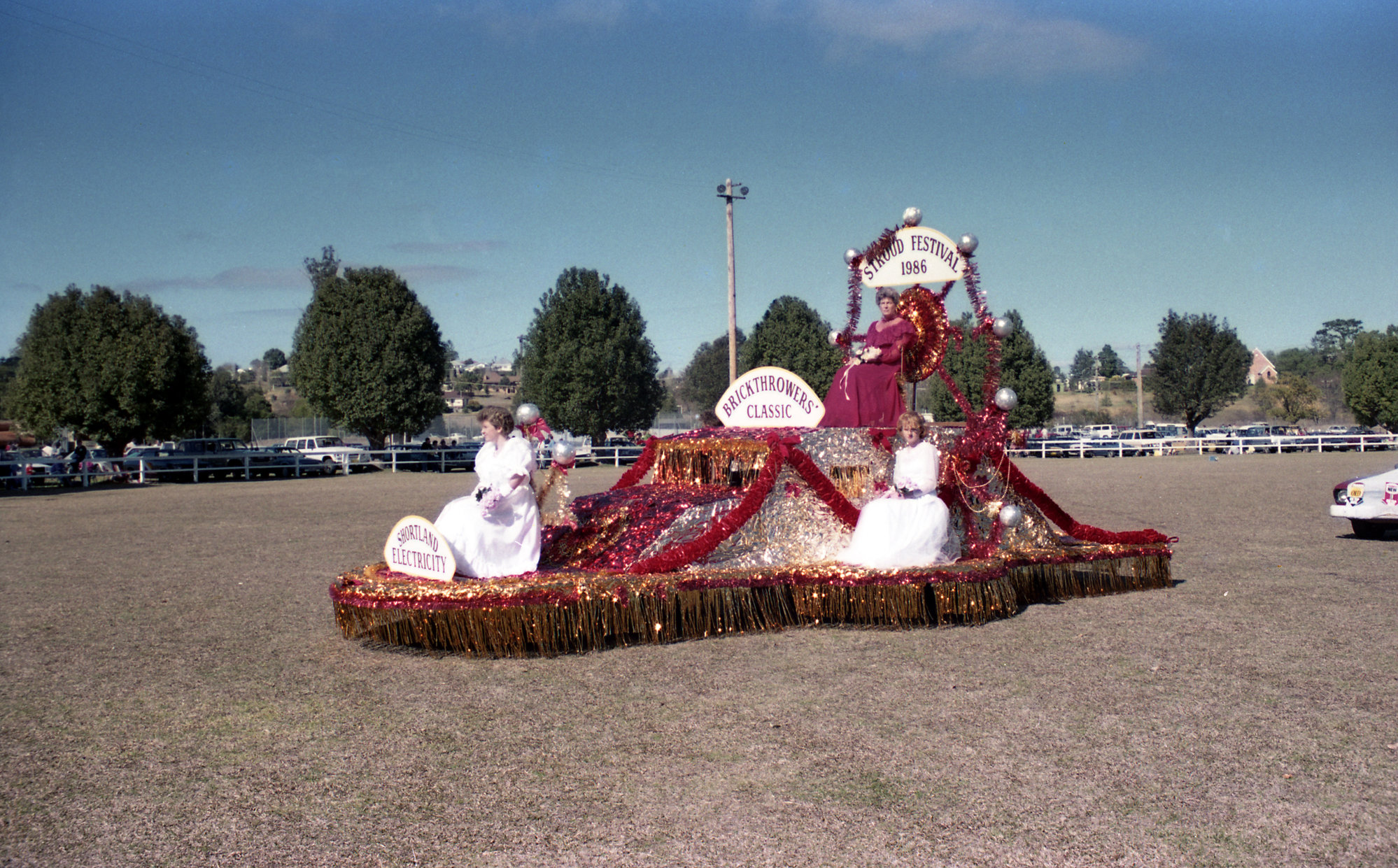 Shortland Electricity float, Stroud International Brick and Rolling Pin Throwing Contest, July 1986