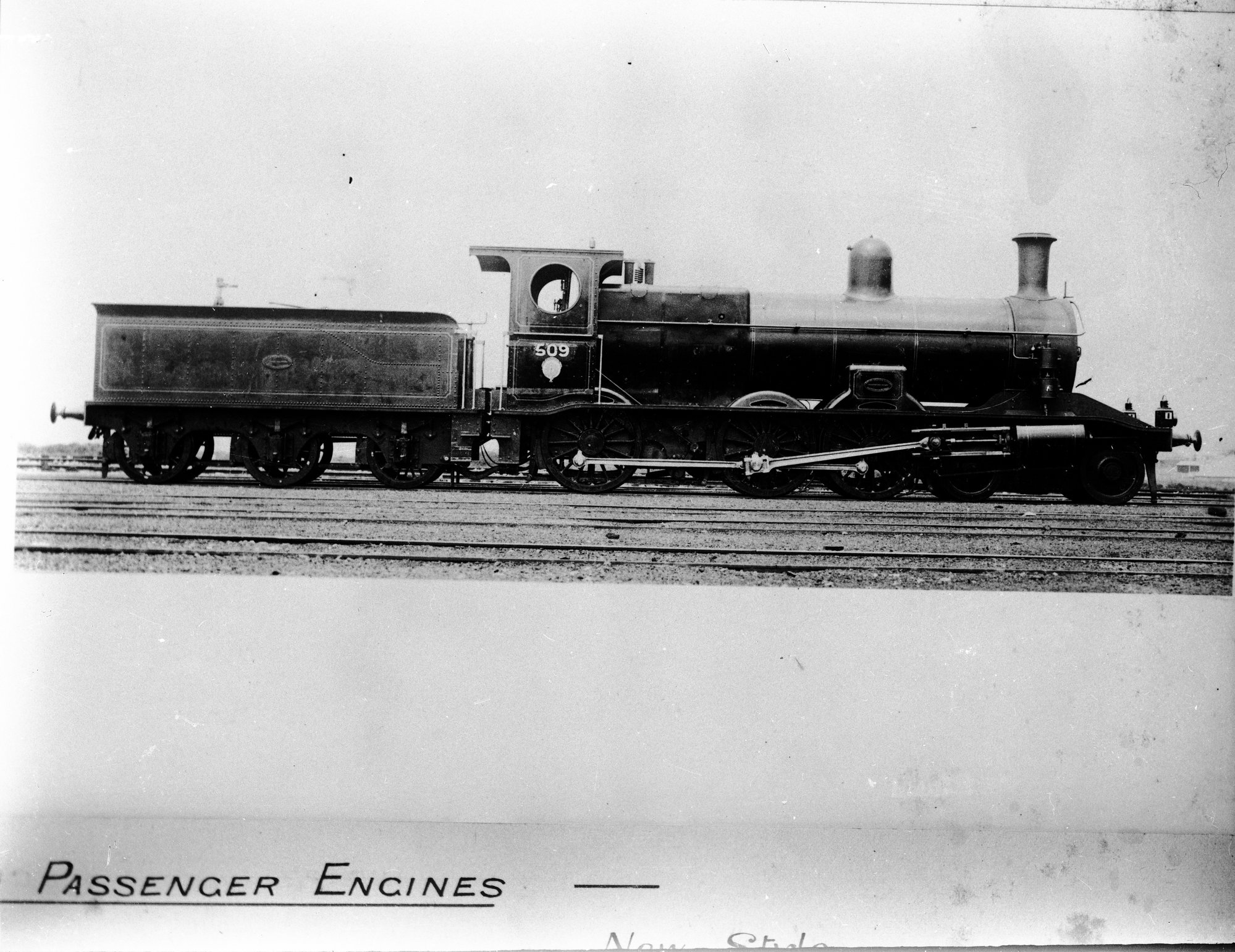 NSWGR P6 class, no. 509, caption reads "Passenger Engines". Probably taken in Sydney, early 1892.