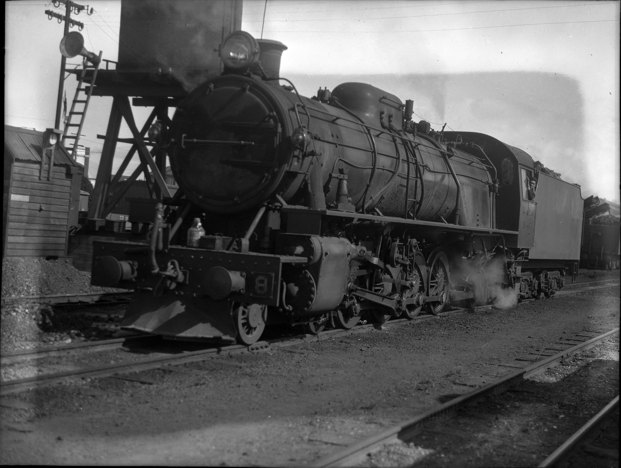 TGR H class, no. 8, at water tower, coal stage visible behind tender, unidentified location [n.d.], [ARHSBox112_2713]. Living Histories, accessed 05/04/2026, https://livinghistories.newcastle.edu.au/nodes/view/87825