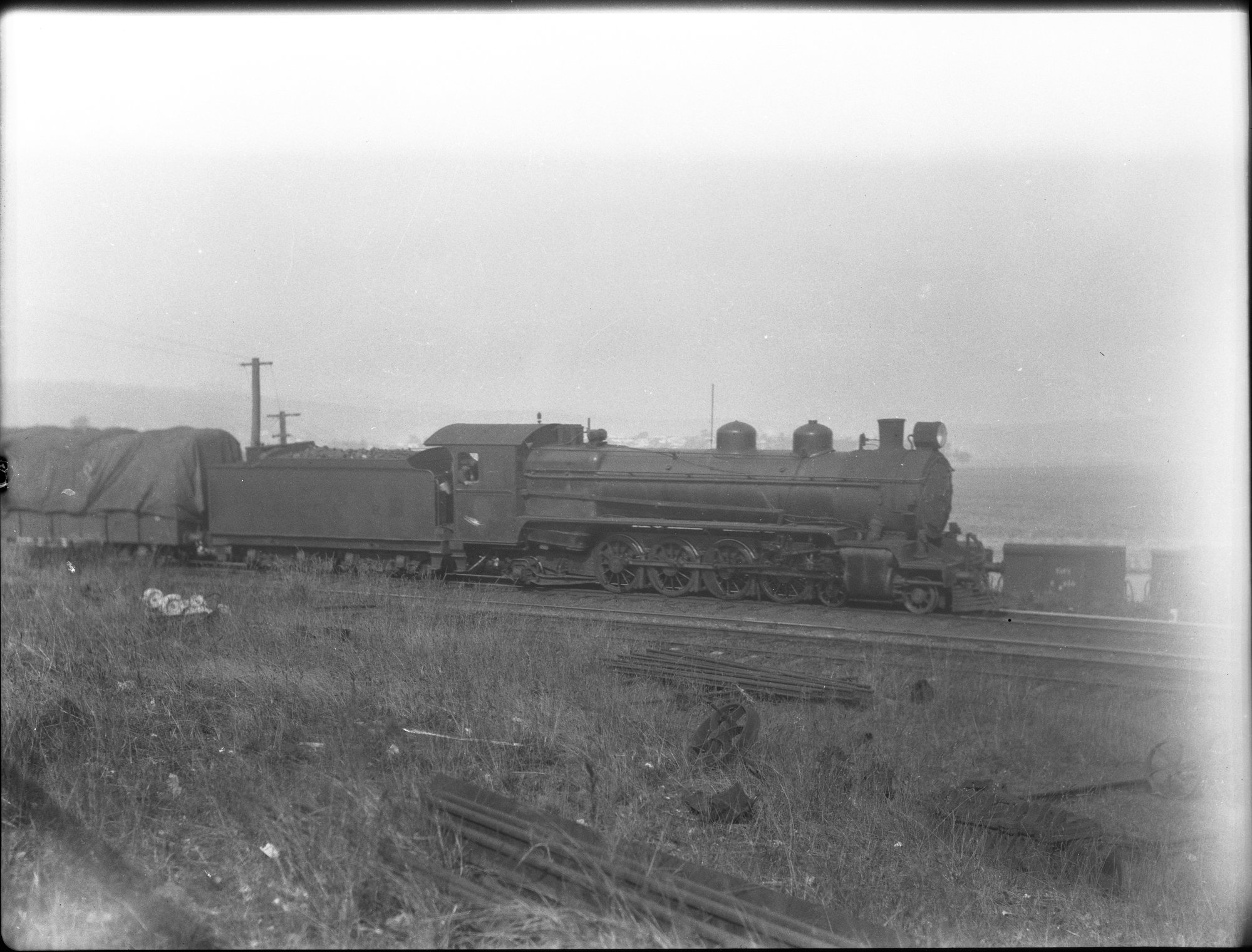 TGR Q Class, number not legible, hauling goods, waterfront line, unidentified location, [n.d.], [ARHSBox112_2745]. Living Histories, accessed 07/12/2025, https://livinghistories.newcastle.edu.au/nodes/view/87857