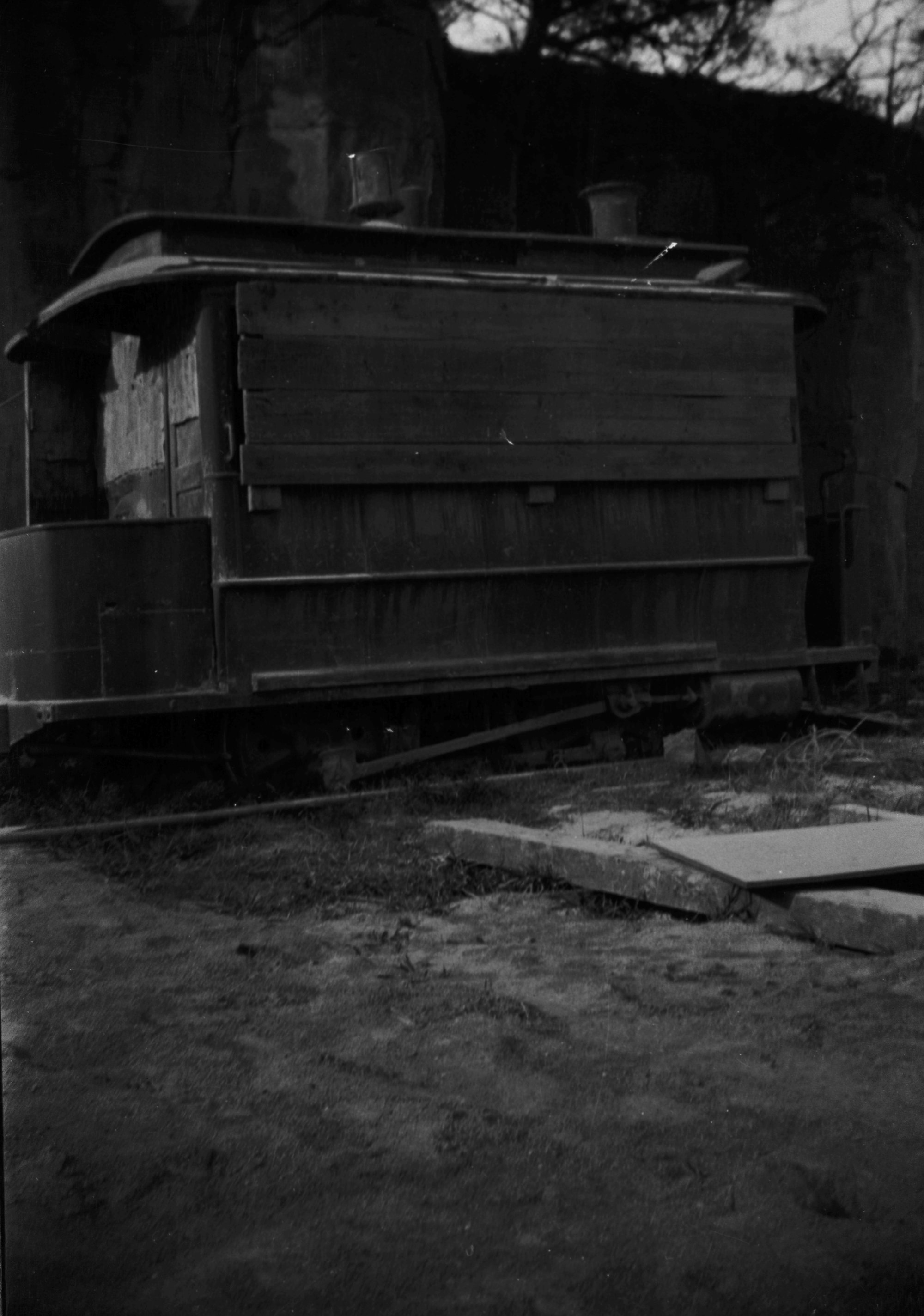 Derelict steam tram, unidentified location, [n.d.], [ARHSBox115_2842]. Living Histories, accessed 19/03/2026, https://livinghistories.newcastle.edu.au/nodes/view/87954