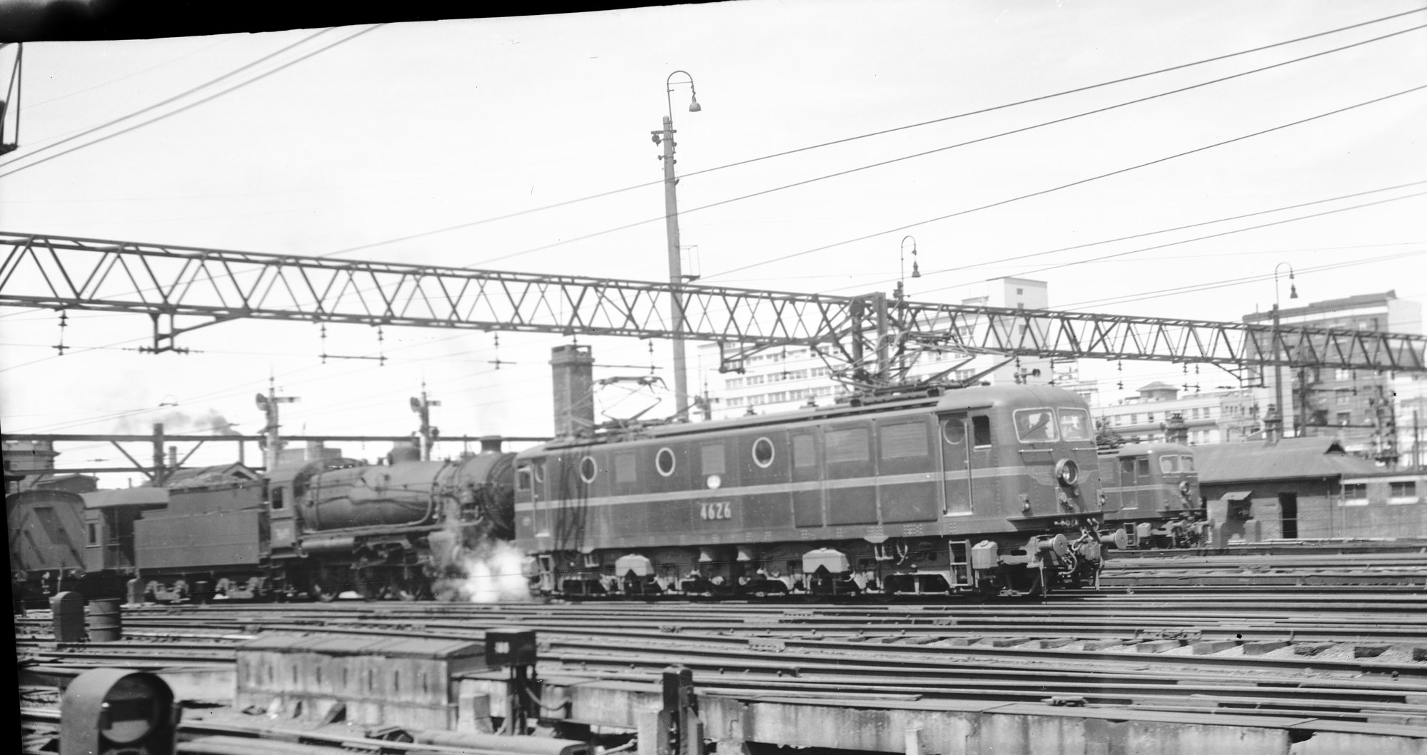 NSWGR 46 Class locomotive, no. 4626, C36 Class behind, another 46 Class in background, unidentified location, [c. 1960]