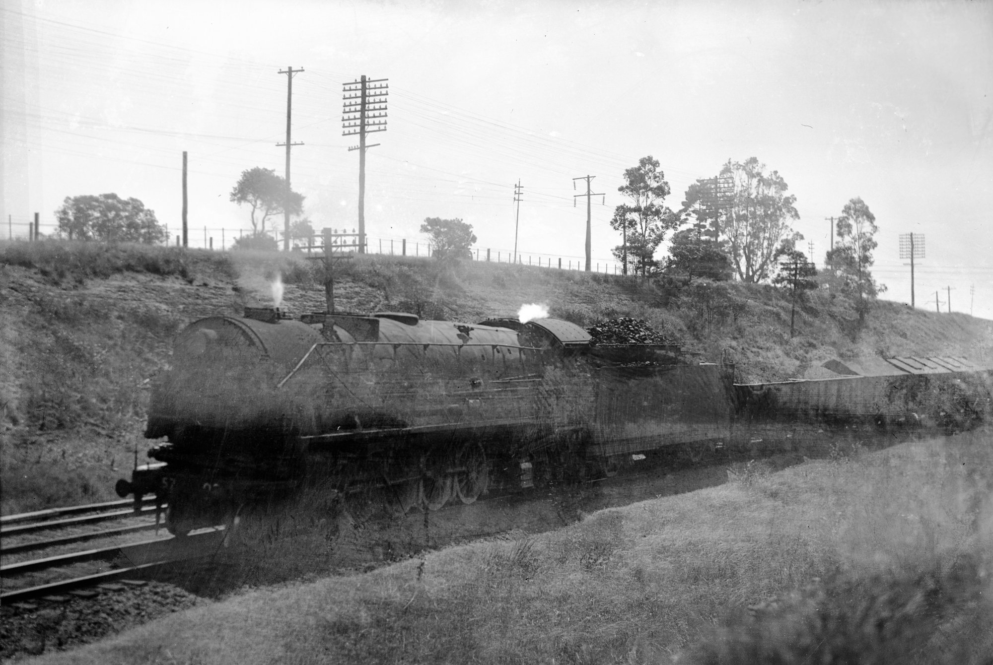NSWGR D57 Class locomotive, unidentified location, [n.d.], [ARHSBox117_2897]. Living Histories, accessed 19/02/2026, https://livinghistories.newcastle.edu.au/nodes/view/88009
