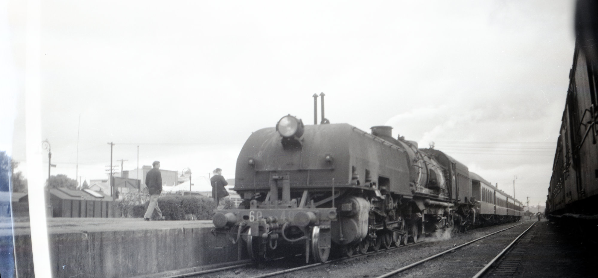 NSWGR AD60 Garratt, no. 6040, hauling passenger train, unidentified location, [c.1955], [ARHSBox117_2912]. Living Histories, accessed 14/03/2026, https://livinghistories.newcastle.edu.au/nodes/view/88024