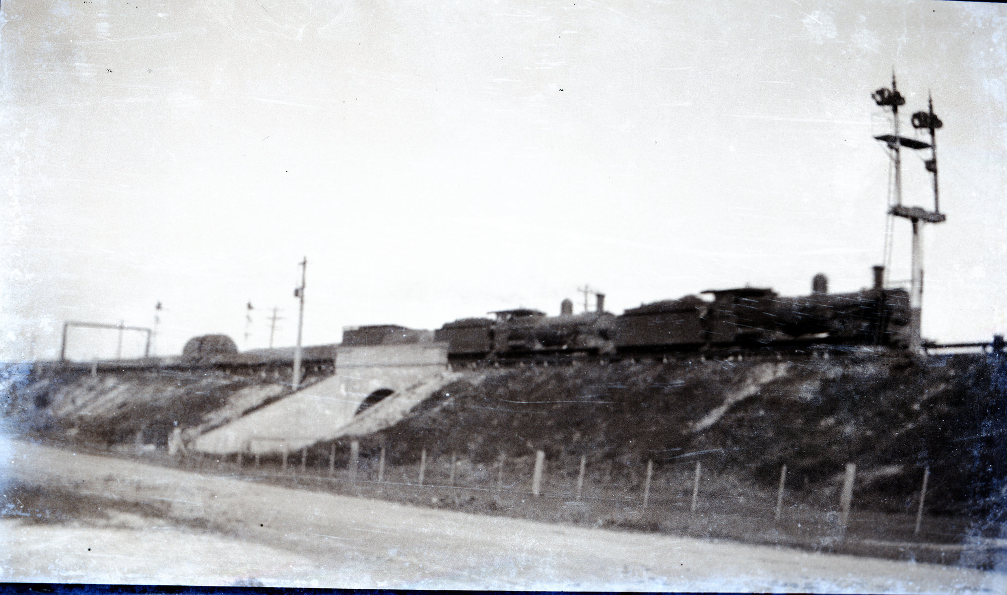 NSWGR D50 and/or D53 Class (image out of focus), hauling freight train, unidentified location, rural [n.d.], [ARHSBox118_3029]. Living Histories, accessed 19/03/2026, https://livinghistories.newcastle.edu.au/nodes/view/88143