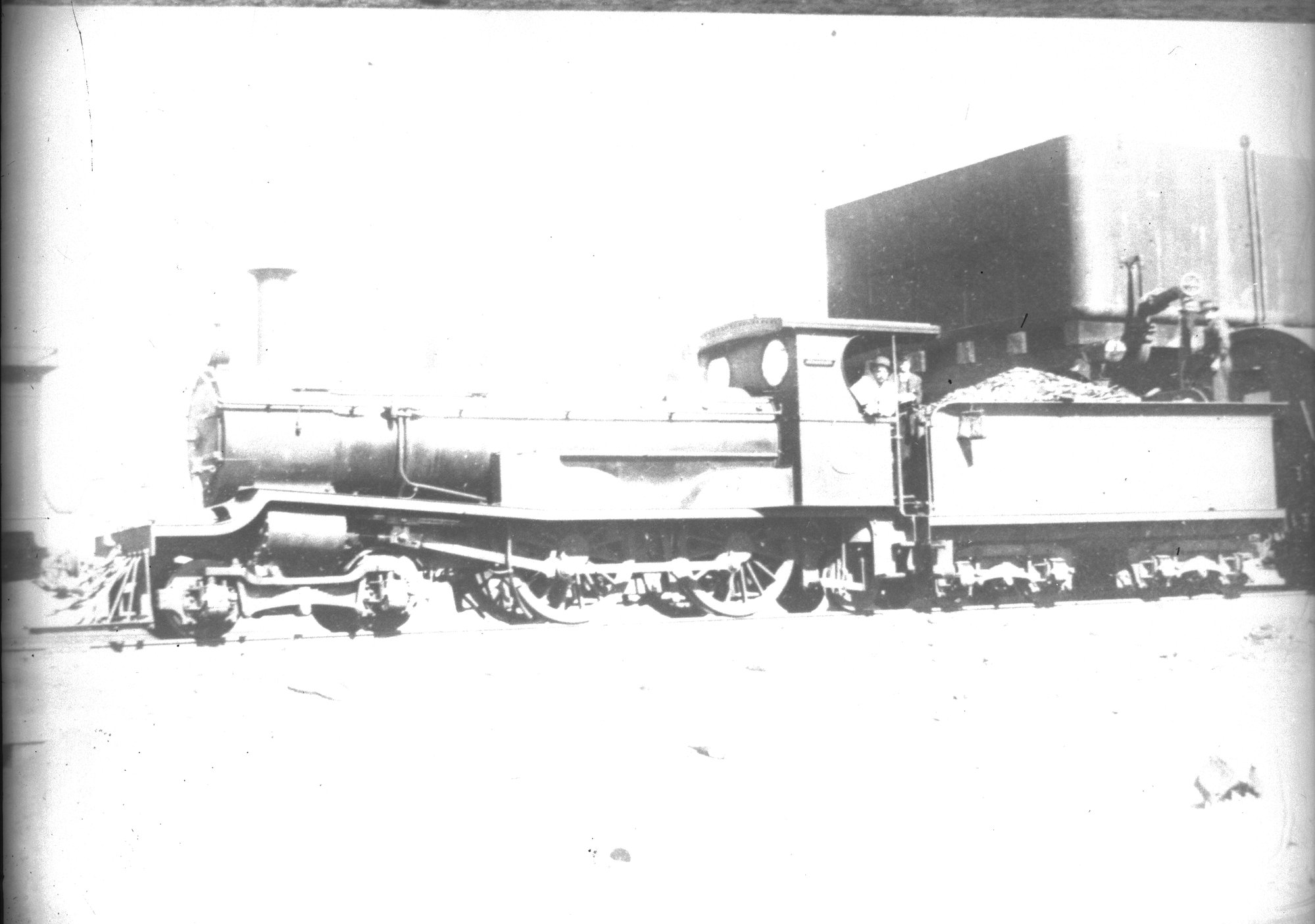 WAGR R Class 4-4-0, at water tower, unidentified location, [n.d.], [ARHSBox130_3273]. Living Histories, accessed 16/04/2026, https://livinghistories.newcastle.edu.au/nodes/view/88389