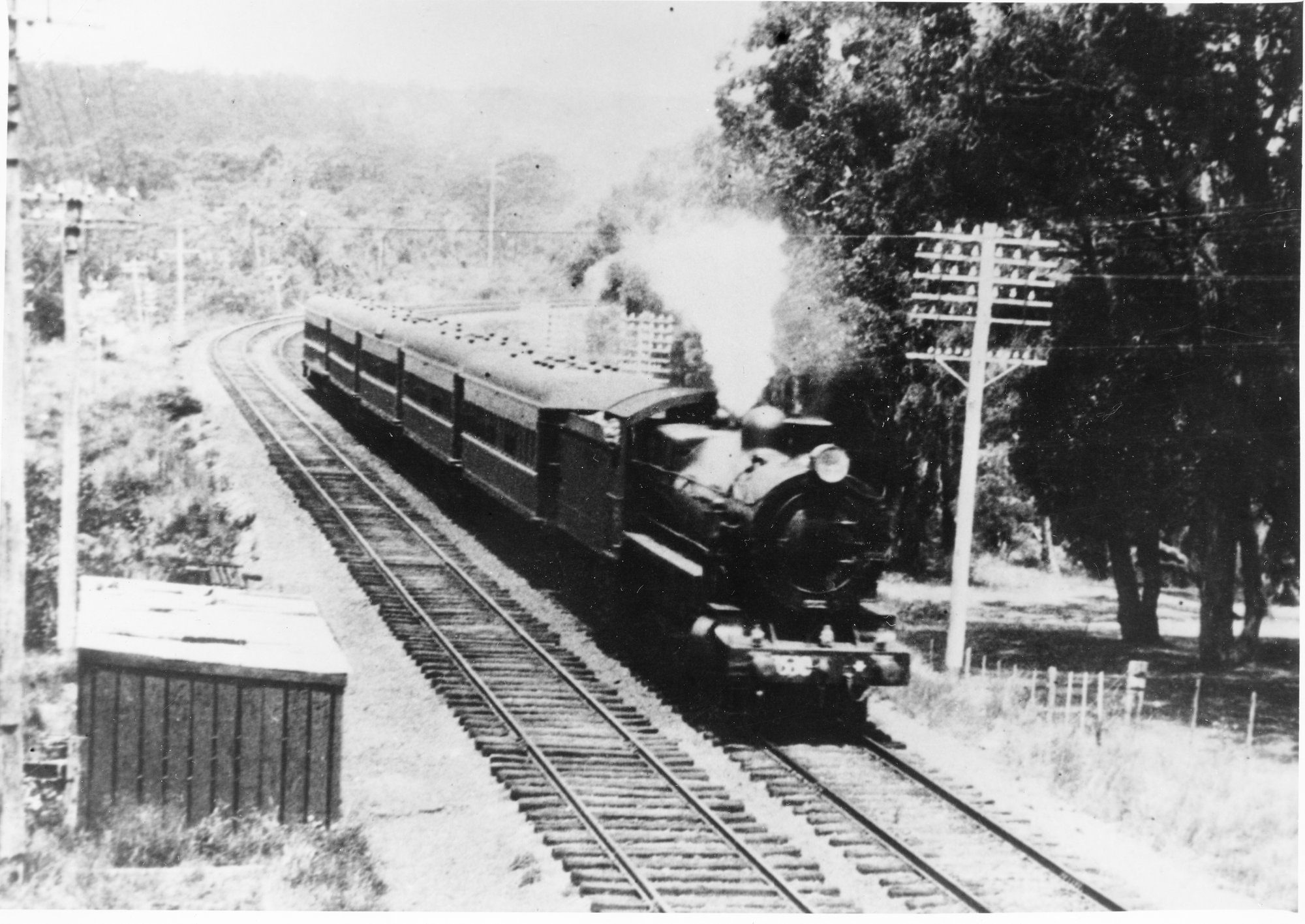 NSWGR C35 class, no. 3530 , approaching Valley Heights with the Caves Express, early 1930's