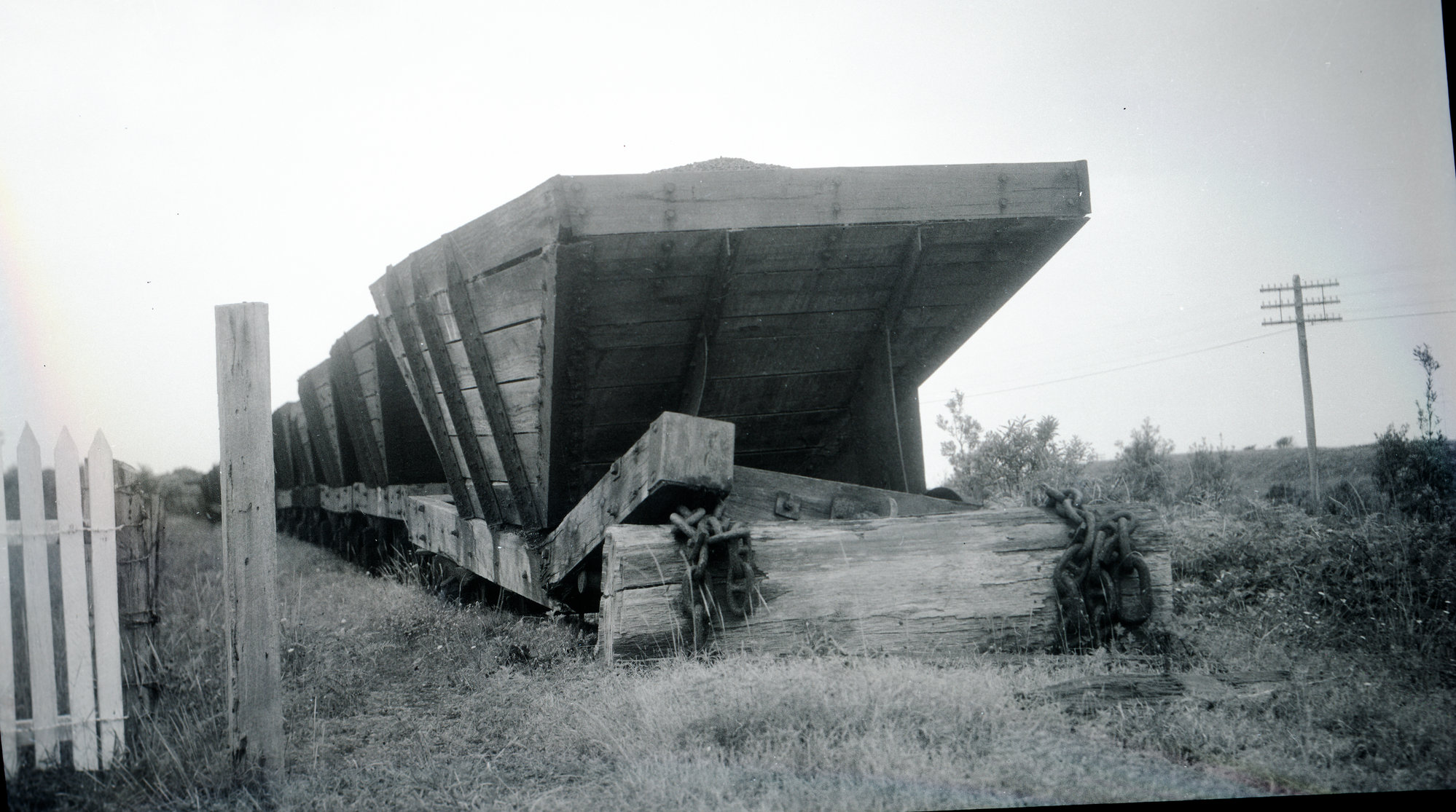 Derelict timber coal hoppers, unidentified date and location, probably Hunter Valley area., [ARHSBox143_3418]. Living Histories, accessed 17/04/2026, https://livinghistories.newcastle.edu.au/nodes/view/88432