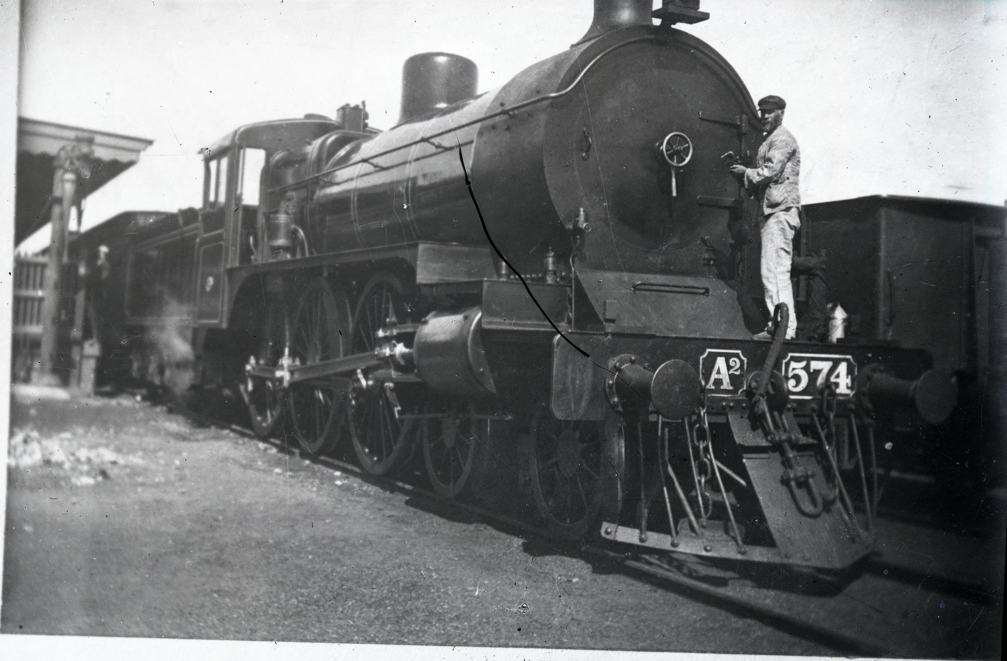 Victorian Railways A2 Class locomotive, no. 574, unidentified location, [n.d.], [ARHSBox151_3536]. Living Histories, accessed 16/04/2026, https://livinghistories.newcastle.edu.au/nodes/view/88549