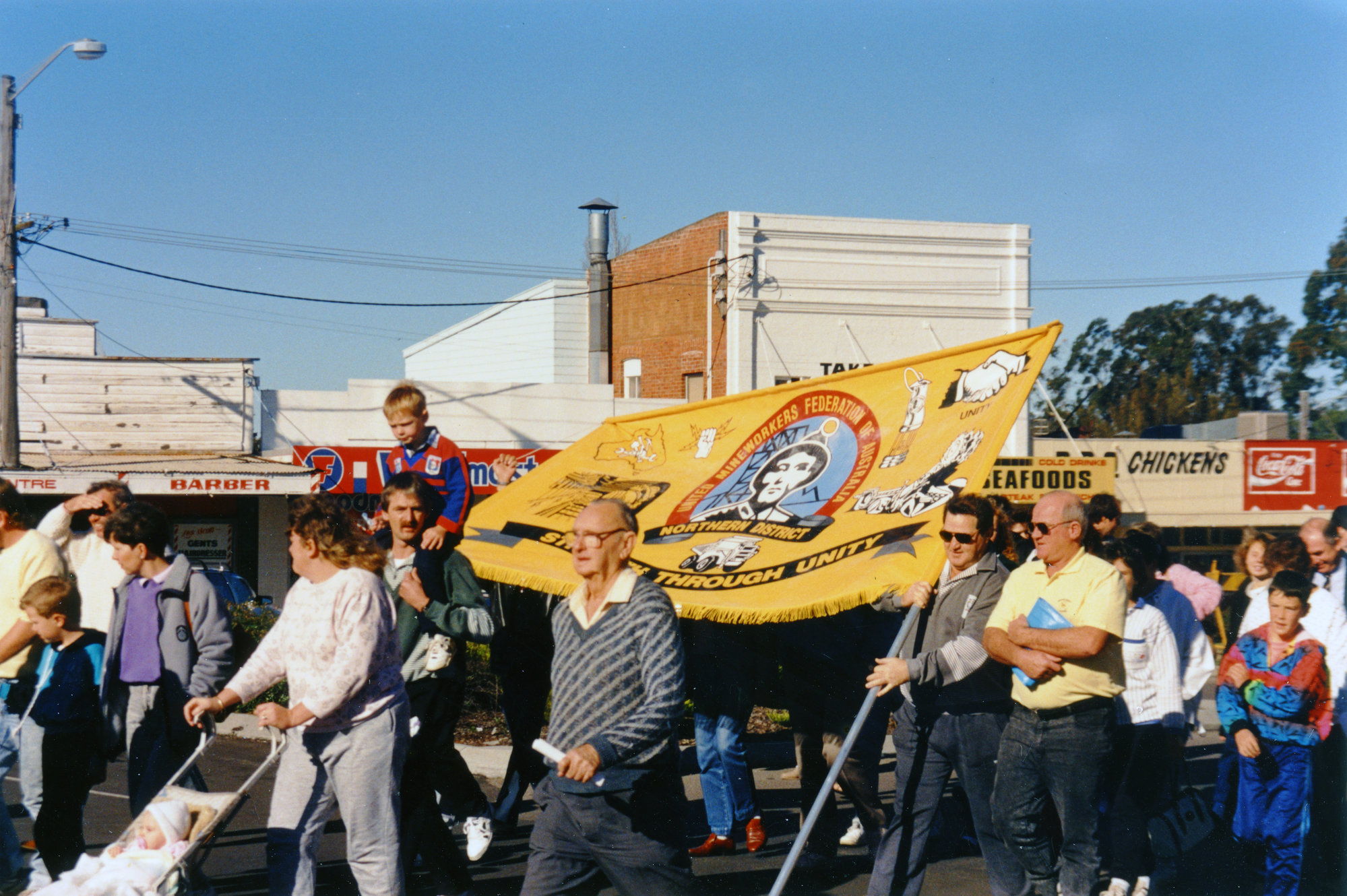 Sternbeck, Percival William, 1921-2004, United Mineworkers Federation of Australia in march protesting the proposed closure of Kurri Hospital, Kurri Kurri, NSW, July 1991 (1991-07), [Sternbeck_Bk31_1991-07_000]. Living Histories, accessed 13/02/2026, https://livinghistories.newcastle.edu.au/nodes/view/89176