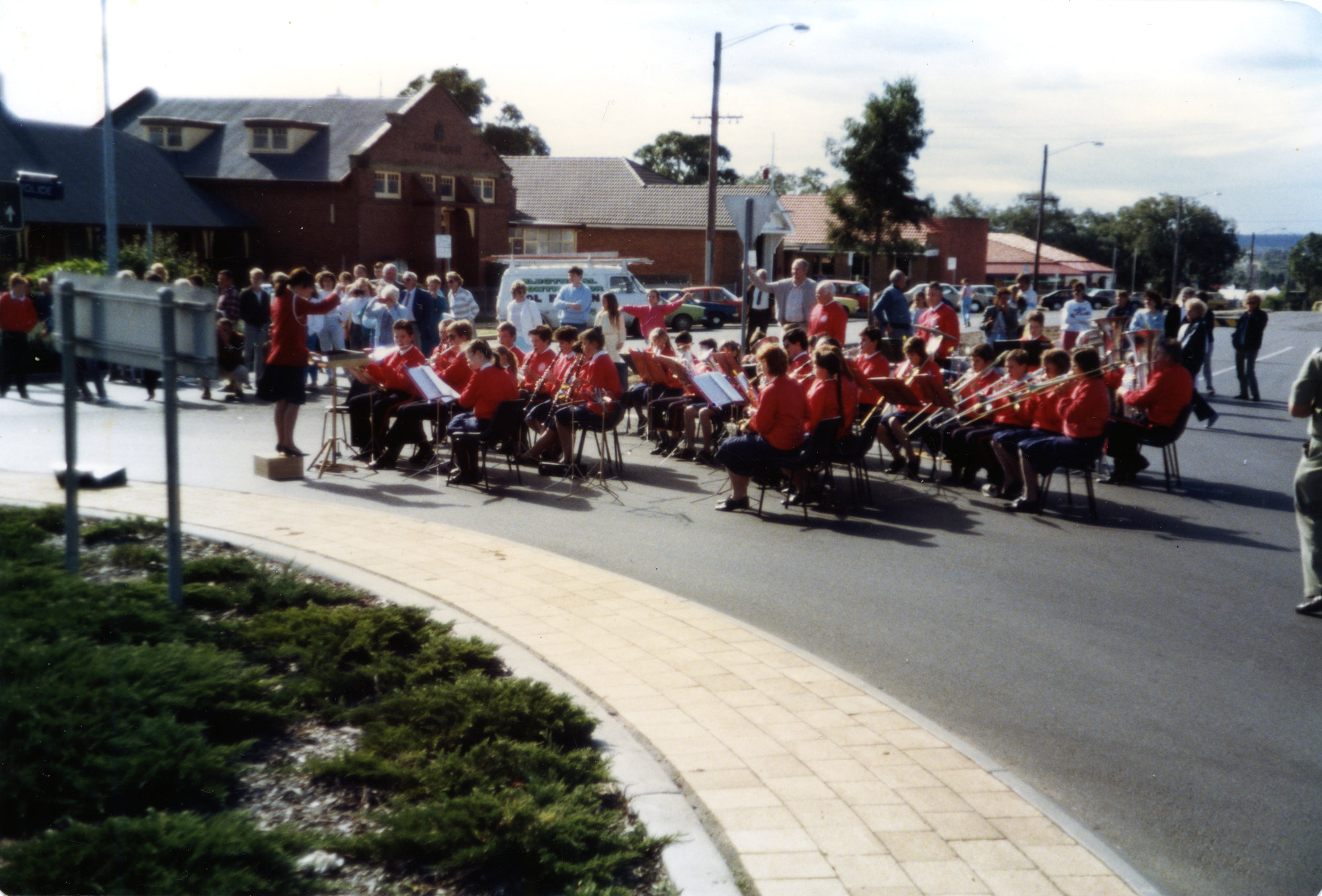 Cessnock Police Boys Band, Flag pole ceremony, Kurri Kurri, NSW, May 1988