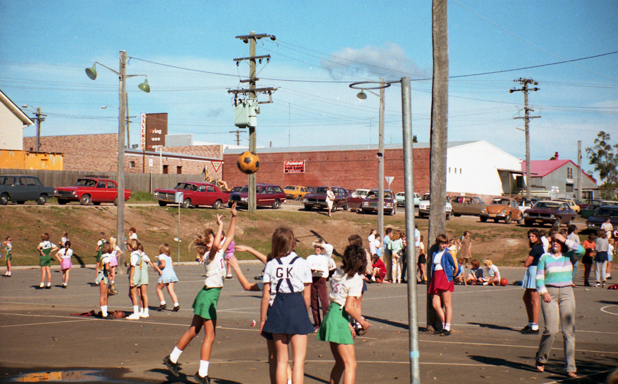 Sternbeck, Percival William, 1921-2004, Girls playing netball at Kurri Kurri, NSW, 28 May 1981 (28th May 1981), [Sternbeck0129-28May1981-009]. Living Histories, accessed 20/03/2026, https://livinghistories.newcastle.edu.au/nodes/view/89501