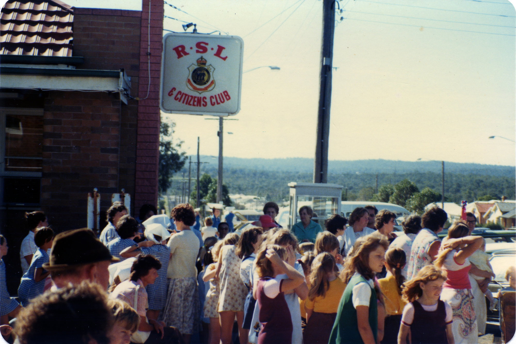 Getting ready for ANZAC Day March, near Kurri Kurri RSL Club, 25 April 1981