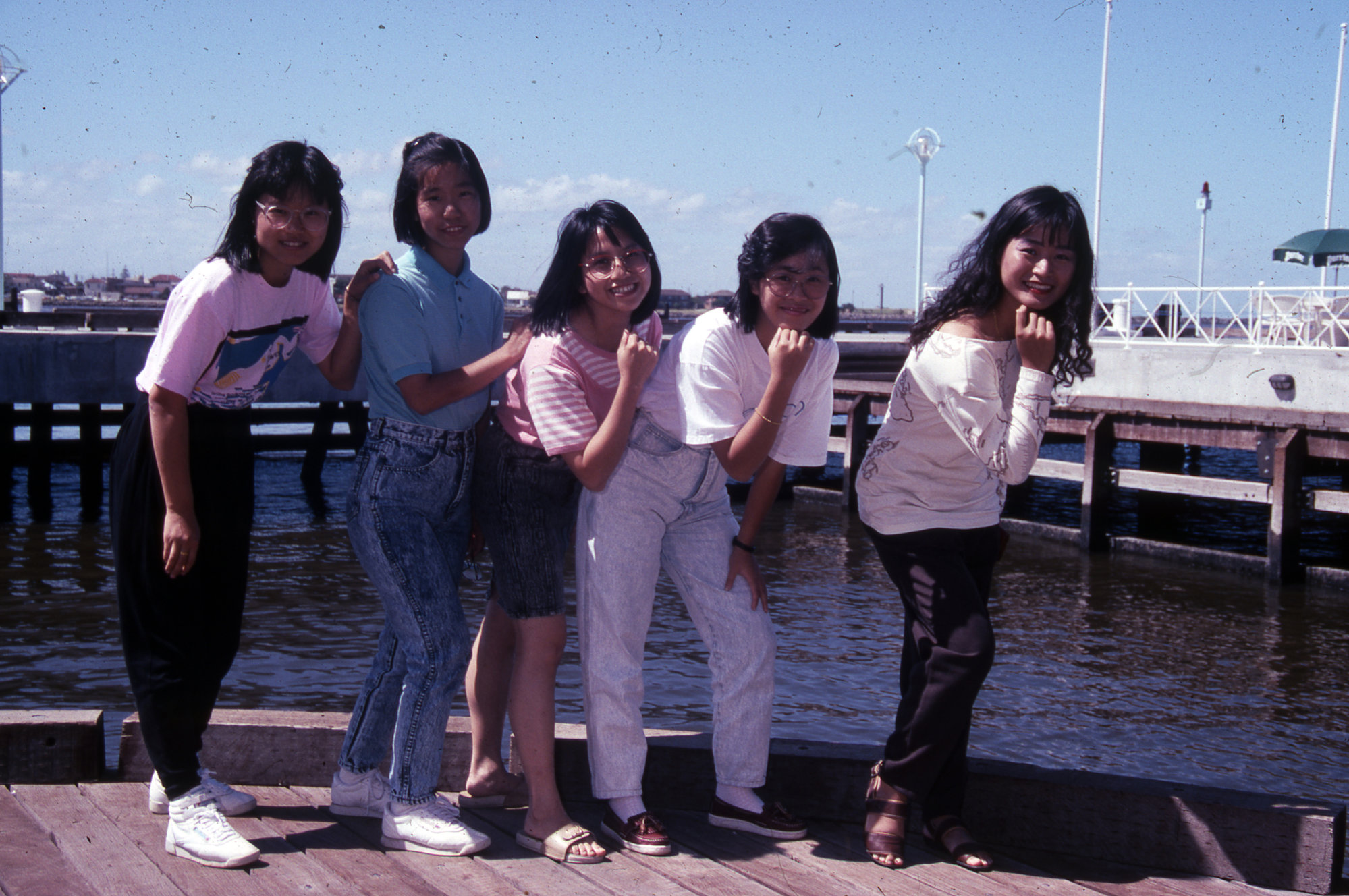 Medical Communication Unit, University of Newcastle, Australia, Students posing at Queens Wharf - Newcastle, NSW, [MCU-AsianStudents-Foreshore026]. Living Histories, accessed 13/03/2026, https://livinghistories.newcastle.edu.au/nodes/view/8967