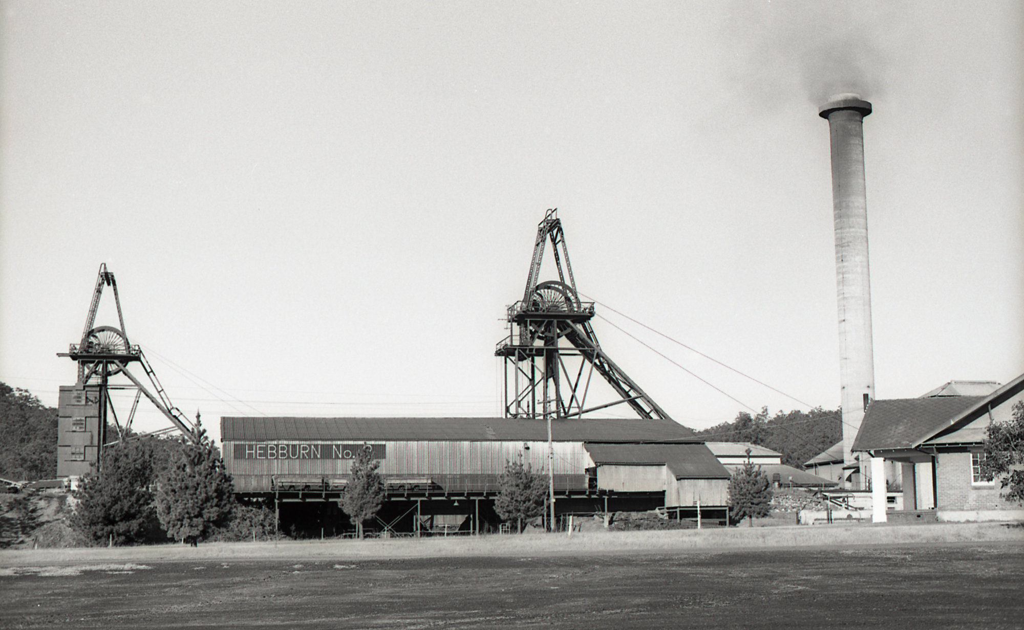 Andrews, Brian Robert, General view of downcast and upcast shafts headframes, Hebburn No. 2 Colliery, NSW, 22 July 1972 (22nd July 1972), [BRAN061_026]. Living Histories, accessed 10/02/2026, https://livinghistories.newcastle.edu.au/nodes/view/89709