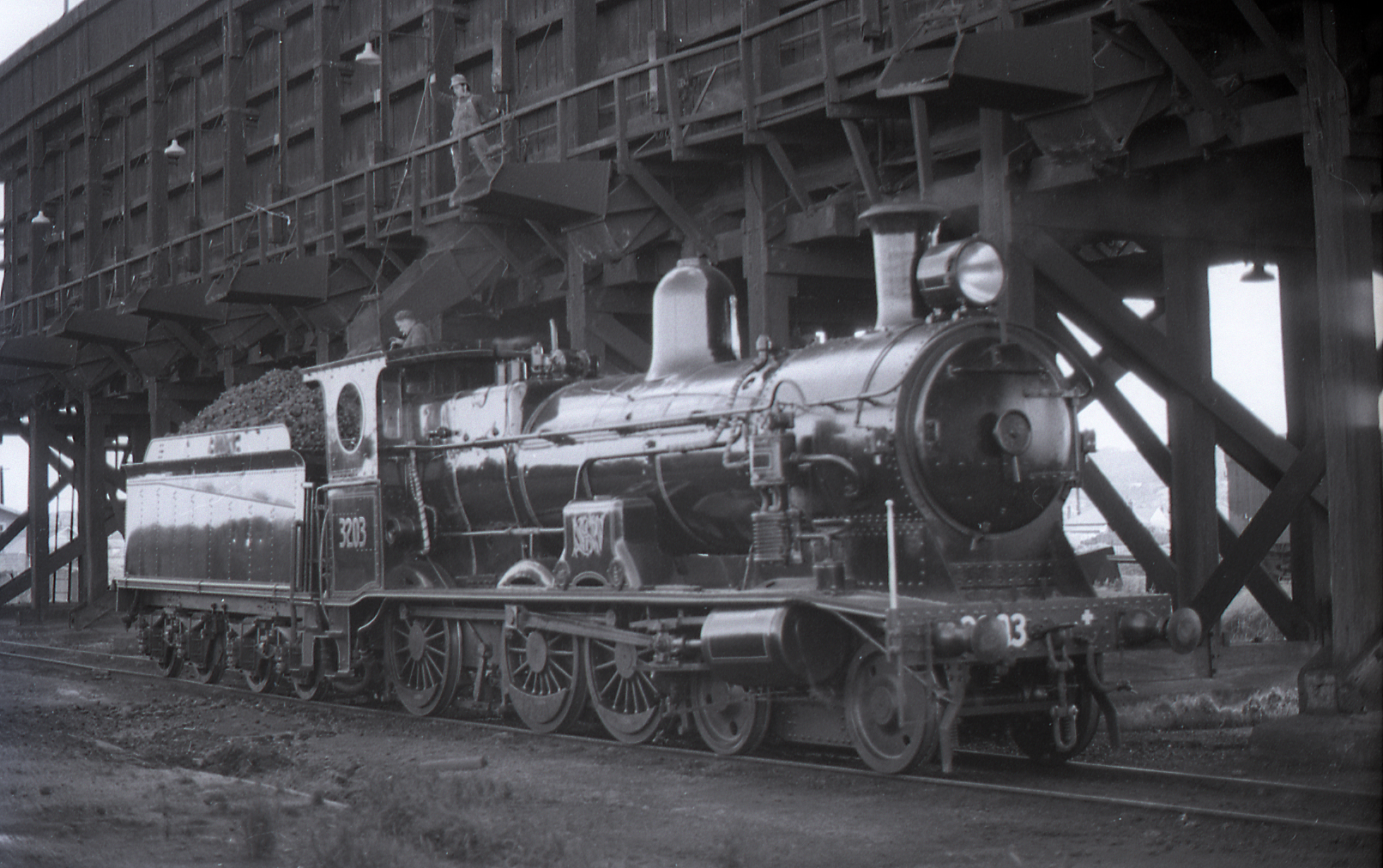 Locomotive 3203 being coaled at Broadmeadow Loco Depot, NSW, 13 August 1972