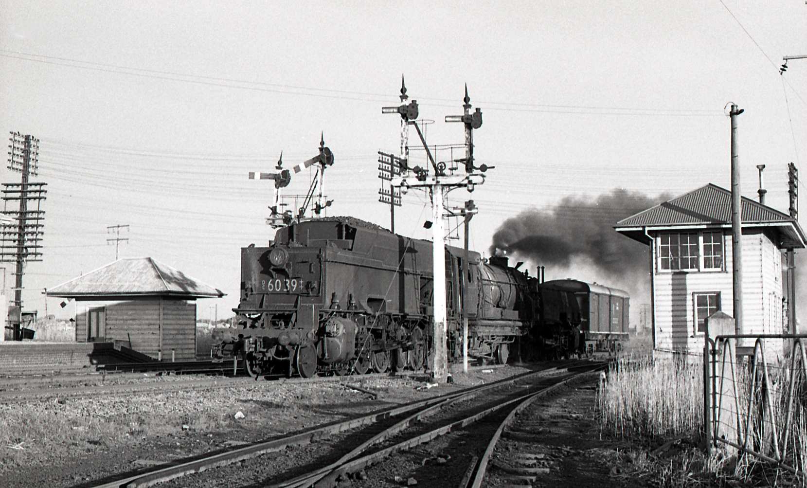 Garratt 6039 on 'Down Newdell Coal train' passing Hexham Station, NSW, 25 August 1972