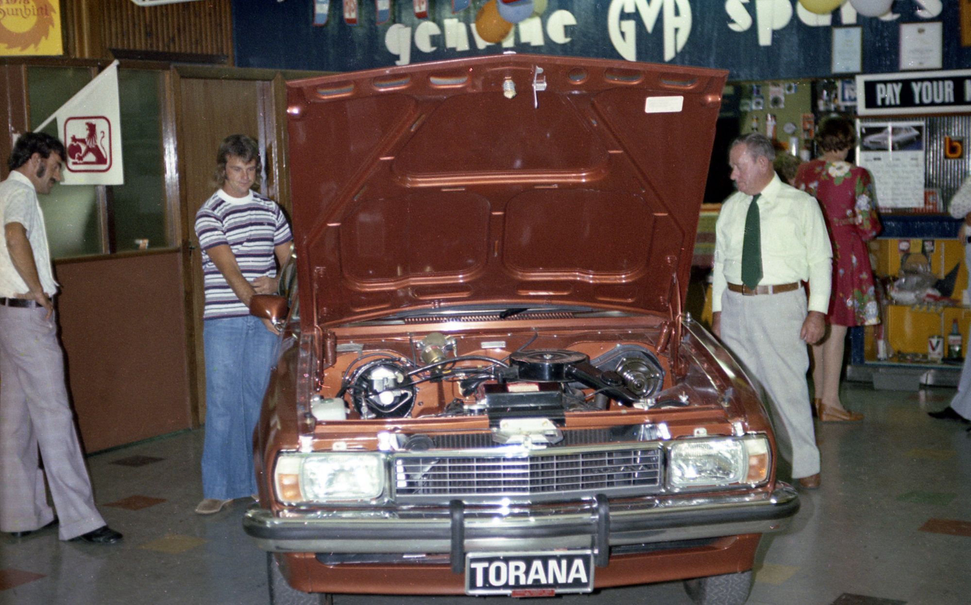 Sternbeck, Percival William, 1921-2004, New Holden Torana, Mr and Mrs Fren's car dealership, Kurri Kurri, NSW, Australia, [1970s] ([1970s]), [Sternbeck0321-009]. Living Histories, accessed 18/03/2026, https://livinghistories.newcastle.edu.au/nodes/view/90124
