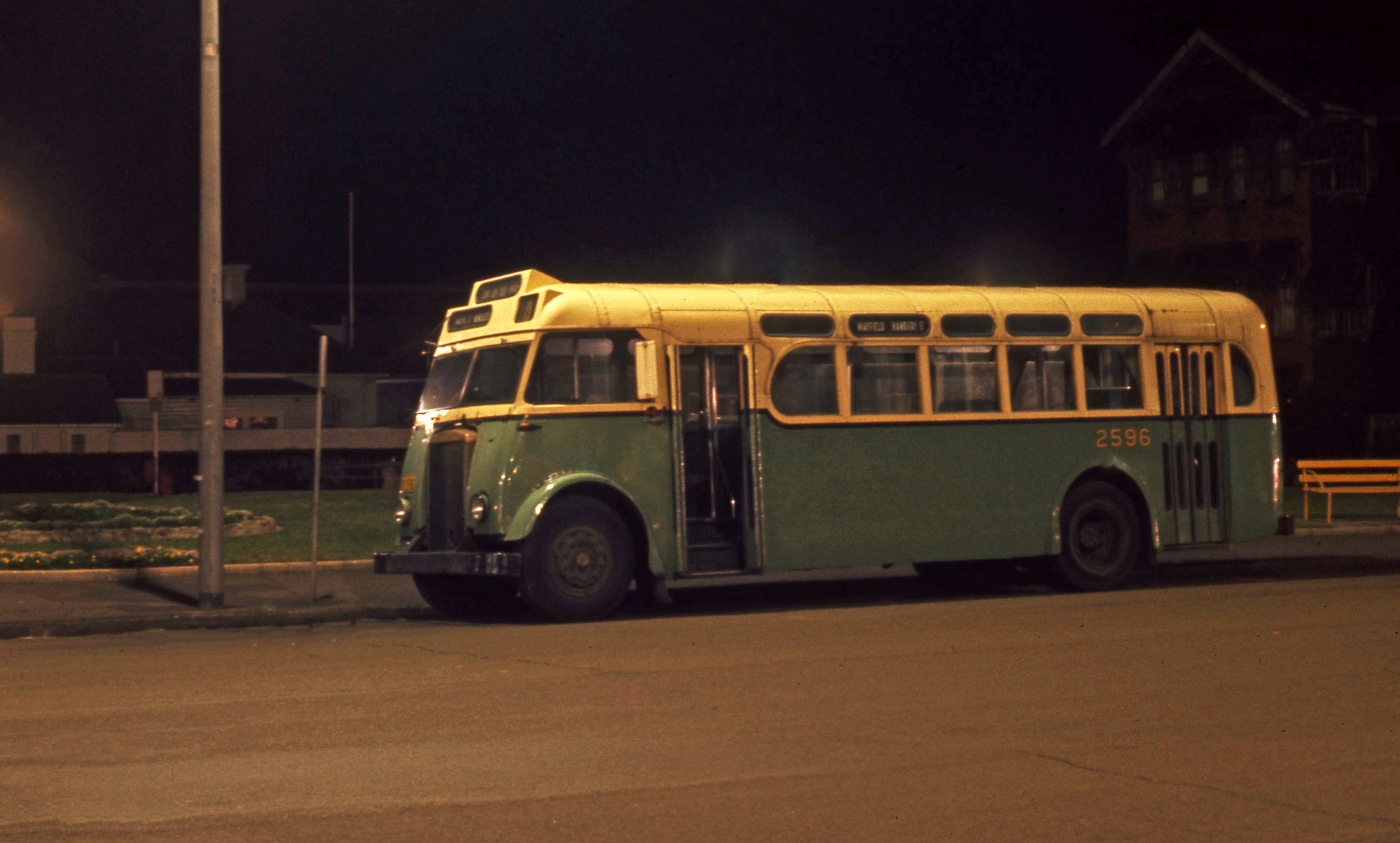 DGT Leyland OPS2-1 2596, Hunter Street, near Pacific Street, Newcastle, NSW - Night time, 15 September 1969