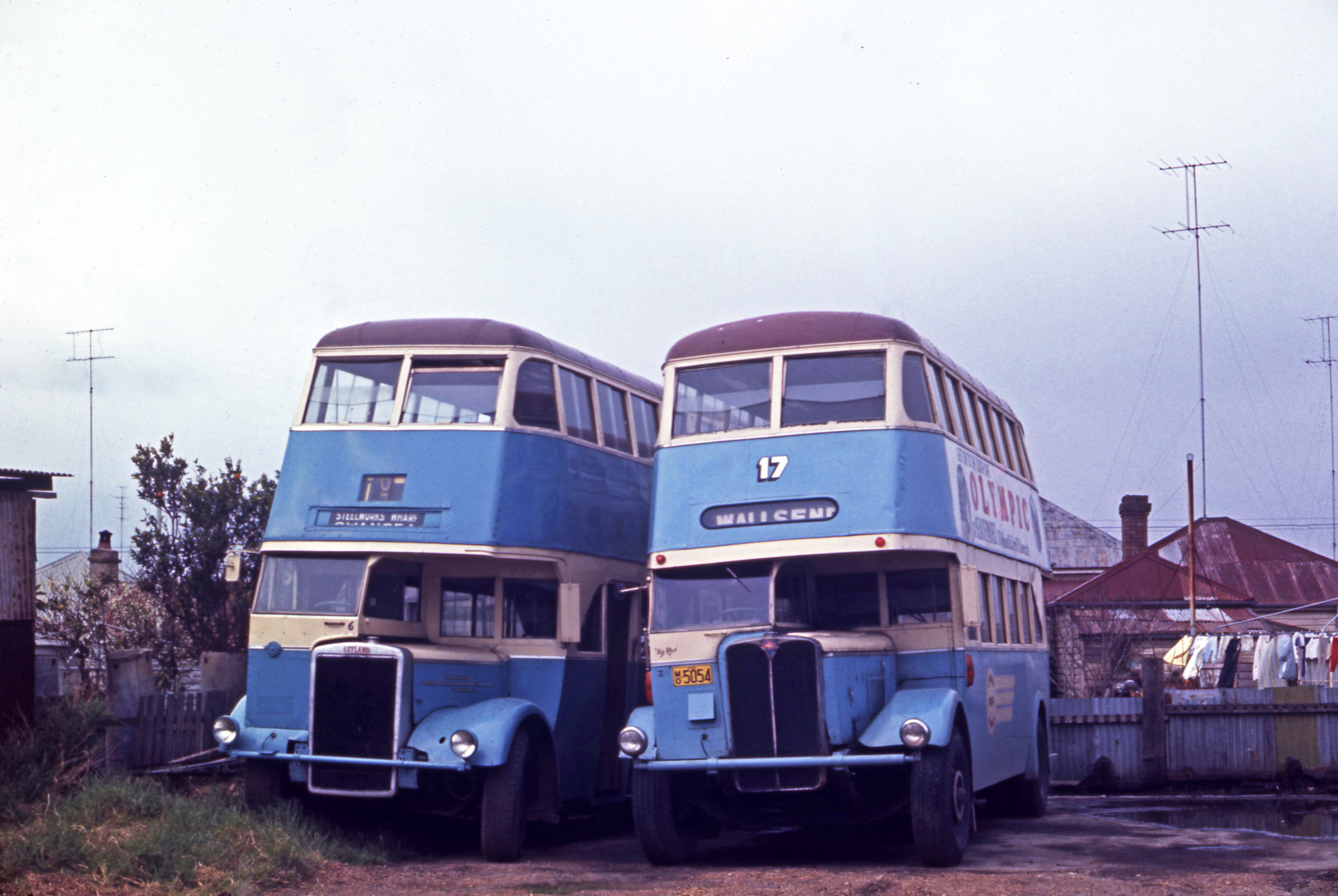 Ward, John, Linsley's Wallsend unreg Leyland OPD1-1 (x DRT&T 1828) & AEC Regent 5054 (x DRT&T 1680), depot yard, Wallsend, NSW (17th August 1969), [00863_170869]. Living Histories, accessed 16/03/2026, https://livinghistories.newcastle.edu.au/nodes/view/90341