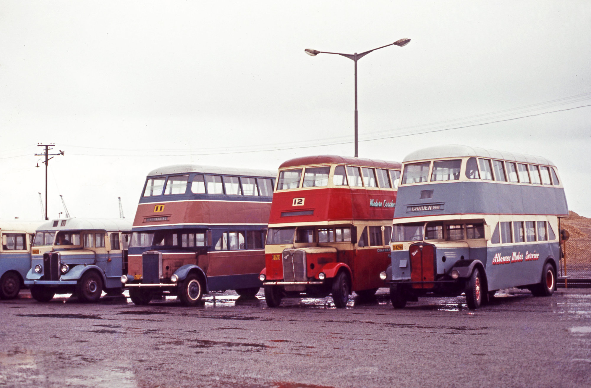 Linsley's AEC Regal III 4428 Georgetown Bus Ley TD5 4134 (x 1524), Chapman's AEC Regent 753 (x 1577), Allome's AEC Regent4298 (x 1688)BHP Steelworks, Port Waratah, NSW, 27 March 1971 (1971-03-27), [02217_270371]. Living Histories, accessed 09/02/2026, https://livinghistories.newcastle.edu.au/nodes/view/90463