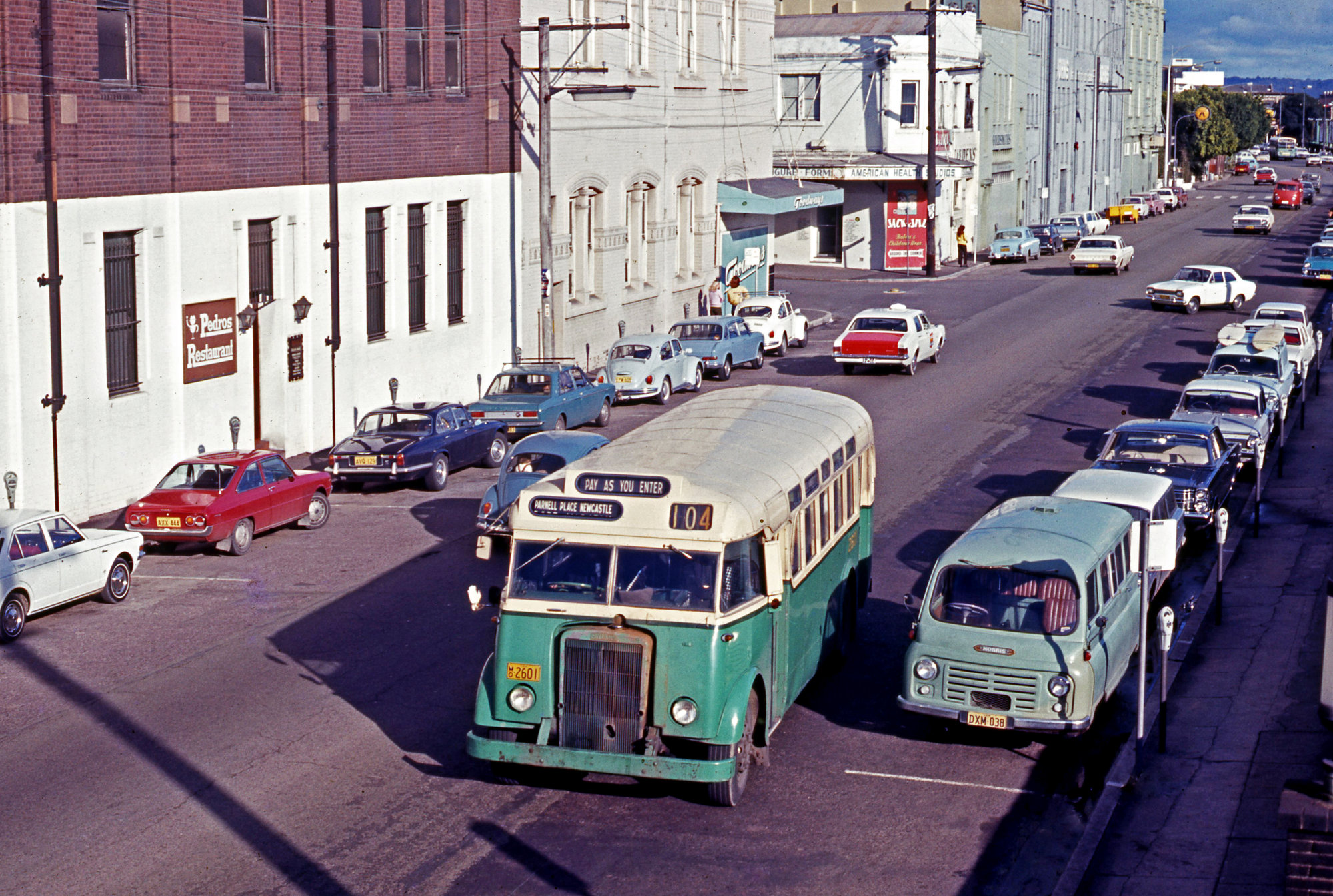 Ward, John, DGT Leyland OPS2-1 2601, Scott Street, Newcastle, NSW, 17 July 1971 (17th July 1971), [02565_170771]. Living Histories, accessed 16/02/2026, https://livinghistories.newcastle.edu.au/nodes/view/90543