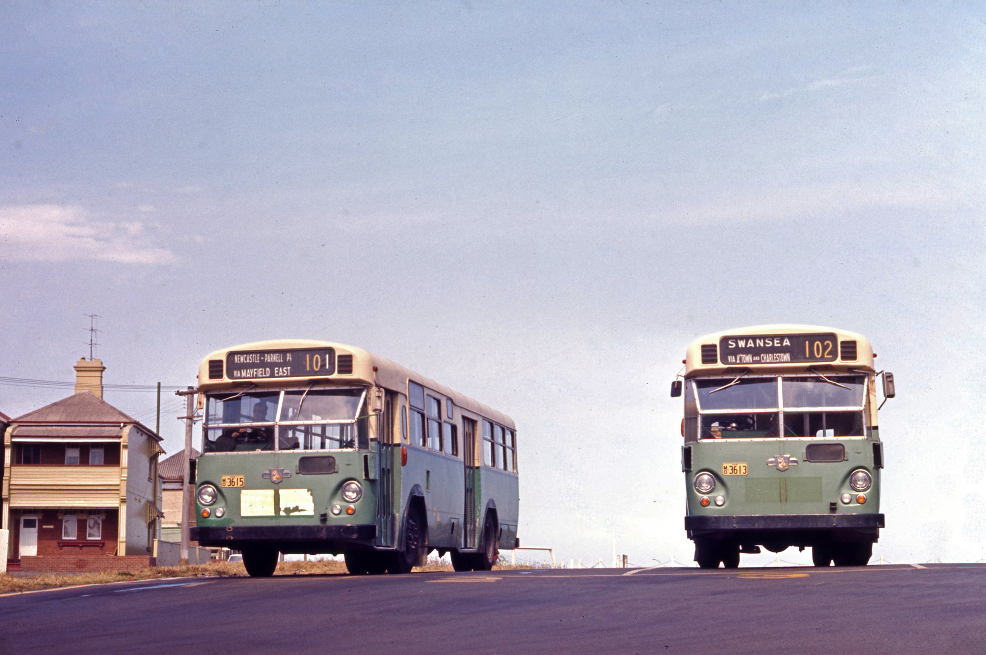 Ward, John, DGT Leyland Leopard MK Is 3615 3613, terminus, Parnell Place, Newcastle, NSW, 30 October 1971 (30th October 1971), [03180_301071]. Living Histories, accessed 08/03/2026, https://livinghistories.newcastle.edu.au/nodes/view/90606