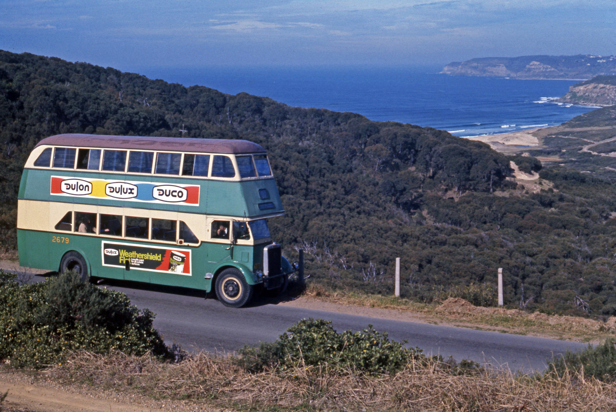 PTC Leyland OPD2-1 2679 tour, Scenic Drive, Merewether Heights, NSW, 5 August 1973
