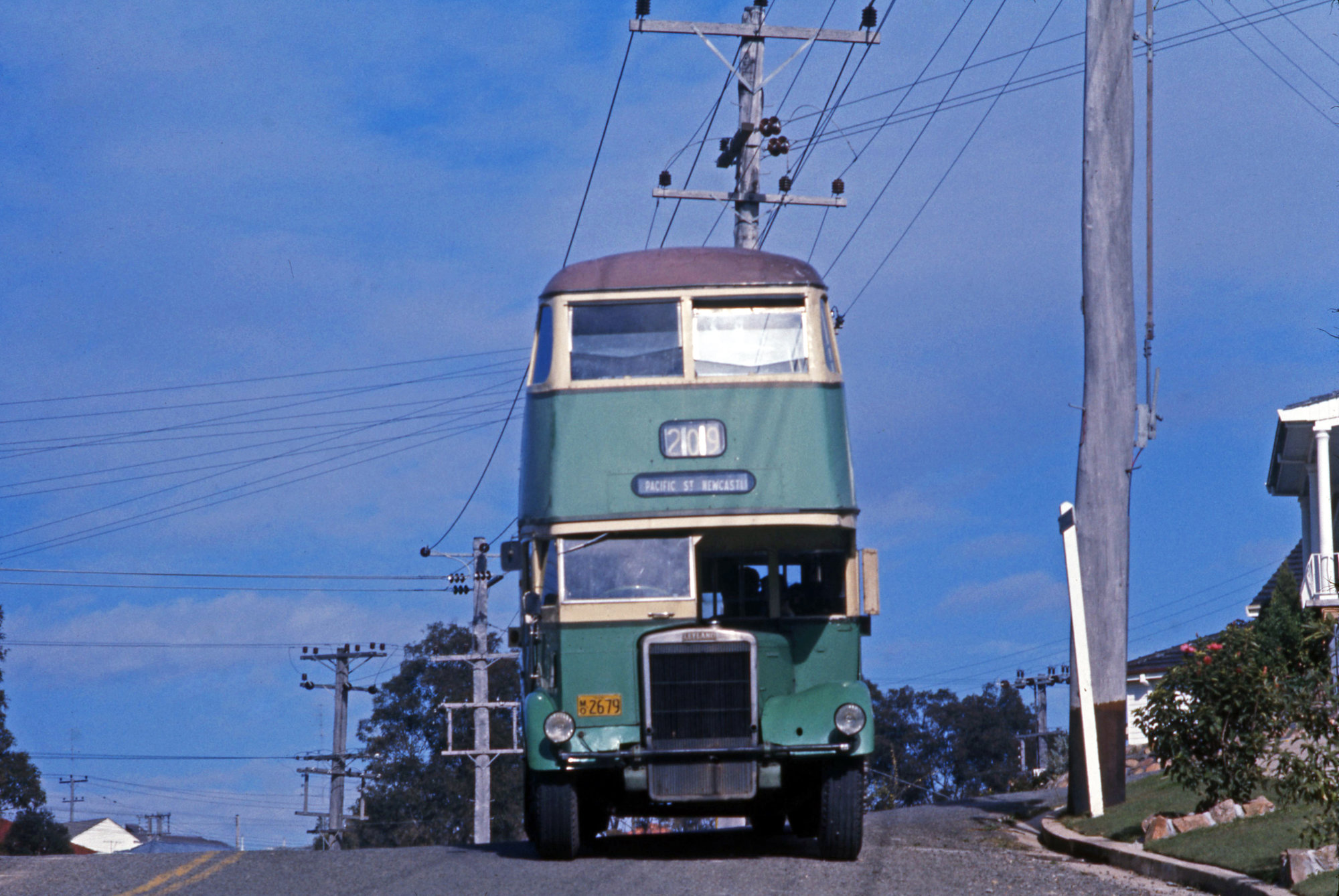 PTC Leyland OPD2-1 2679 tour, Sun Hill Drive, Merewether Heights, NSW, 5 August 1973