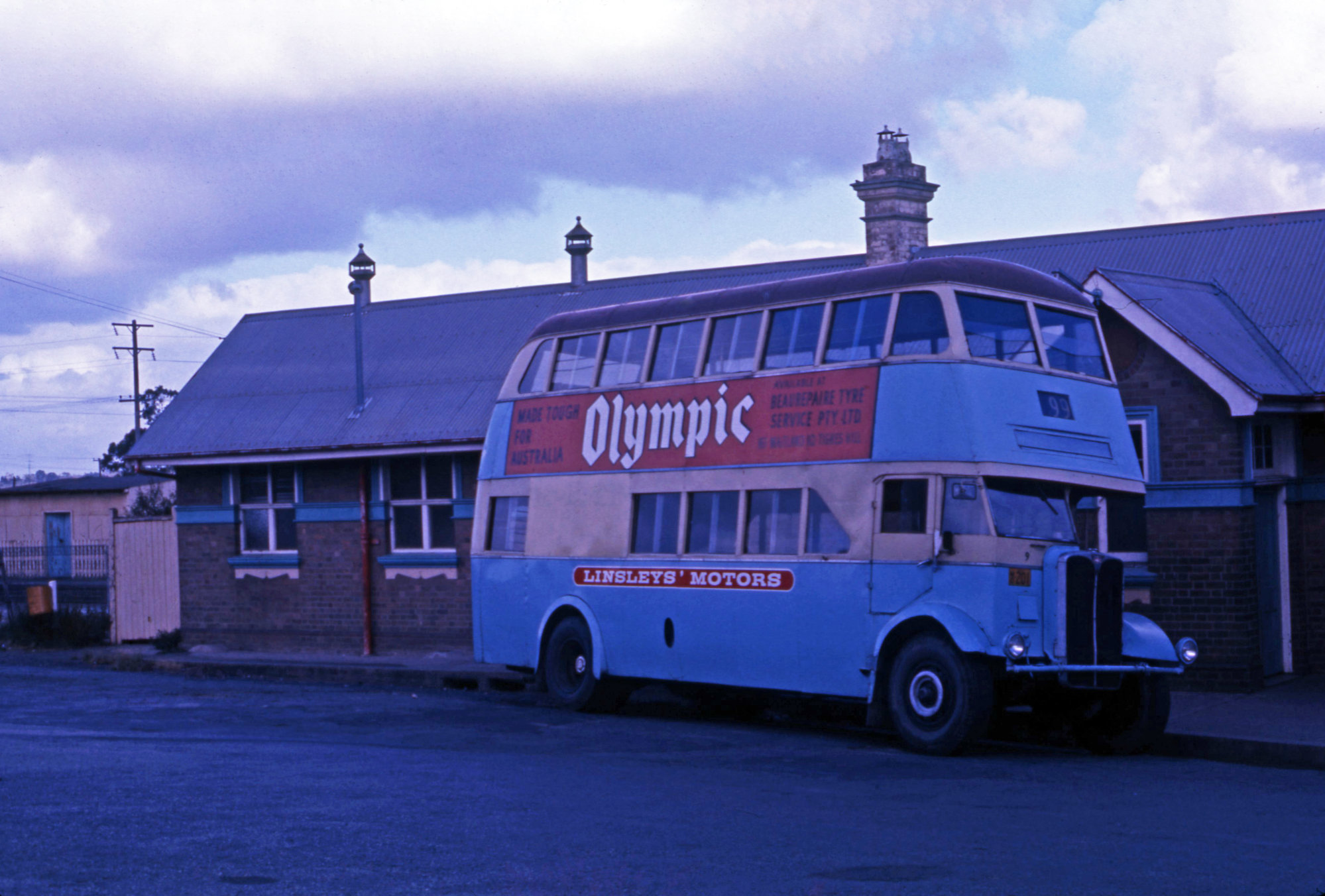David Wilson's AEC Regent 201 (xDRT&T 1694) outside railway station, Wyong, NSW, 21 December 1974
