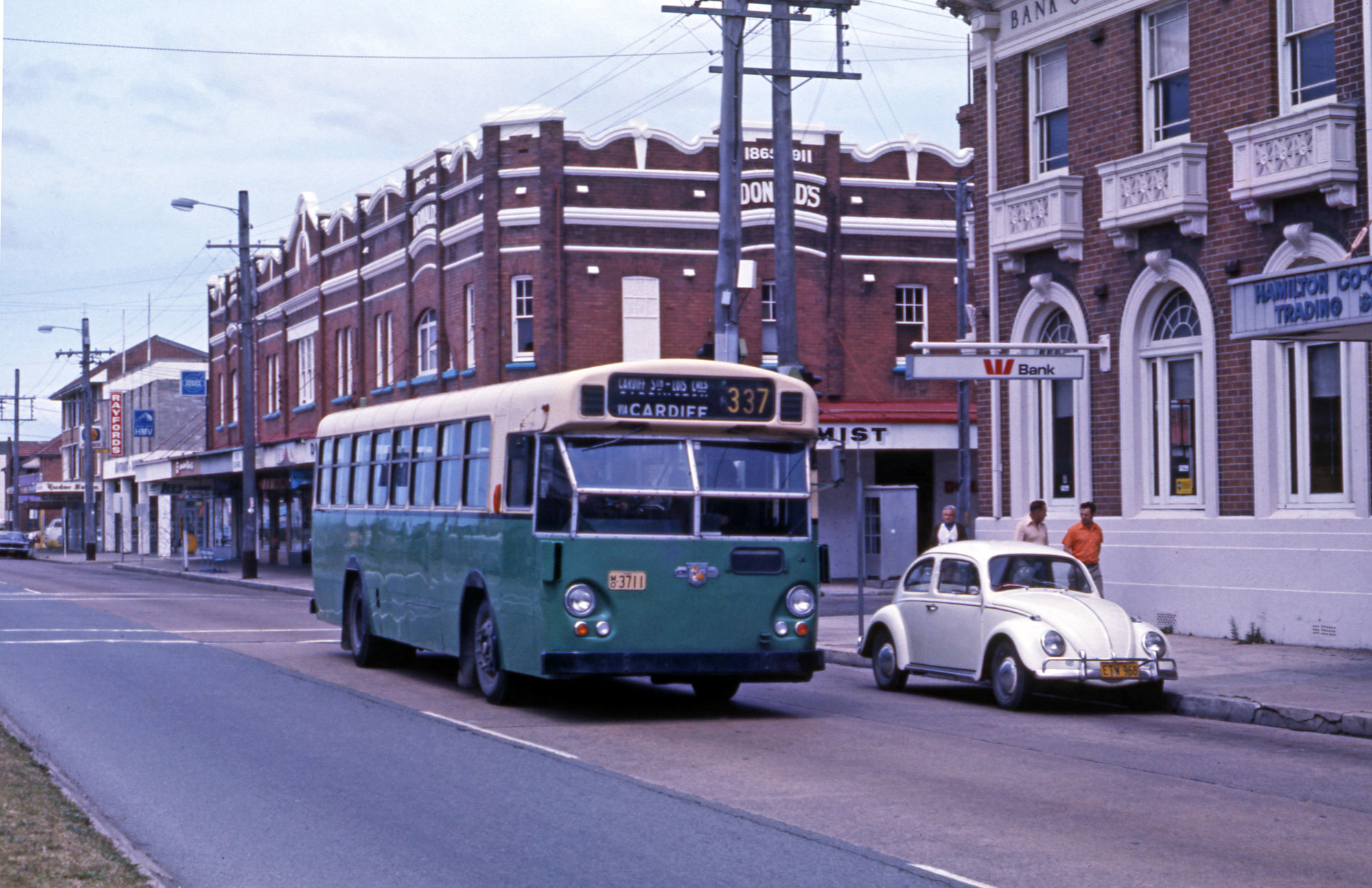 PTC Leyland Leopard MK I 3711, Tudor Street, Hamilton, NSW, 19 October 1975