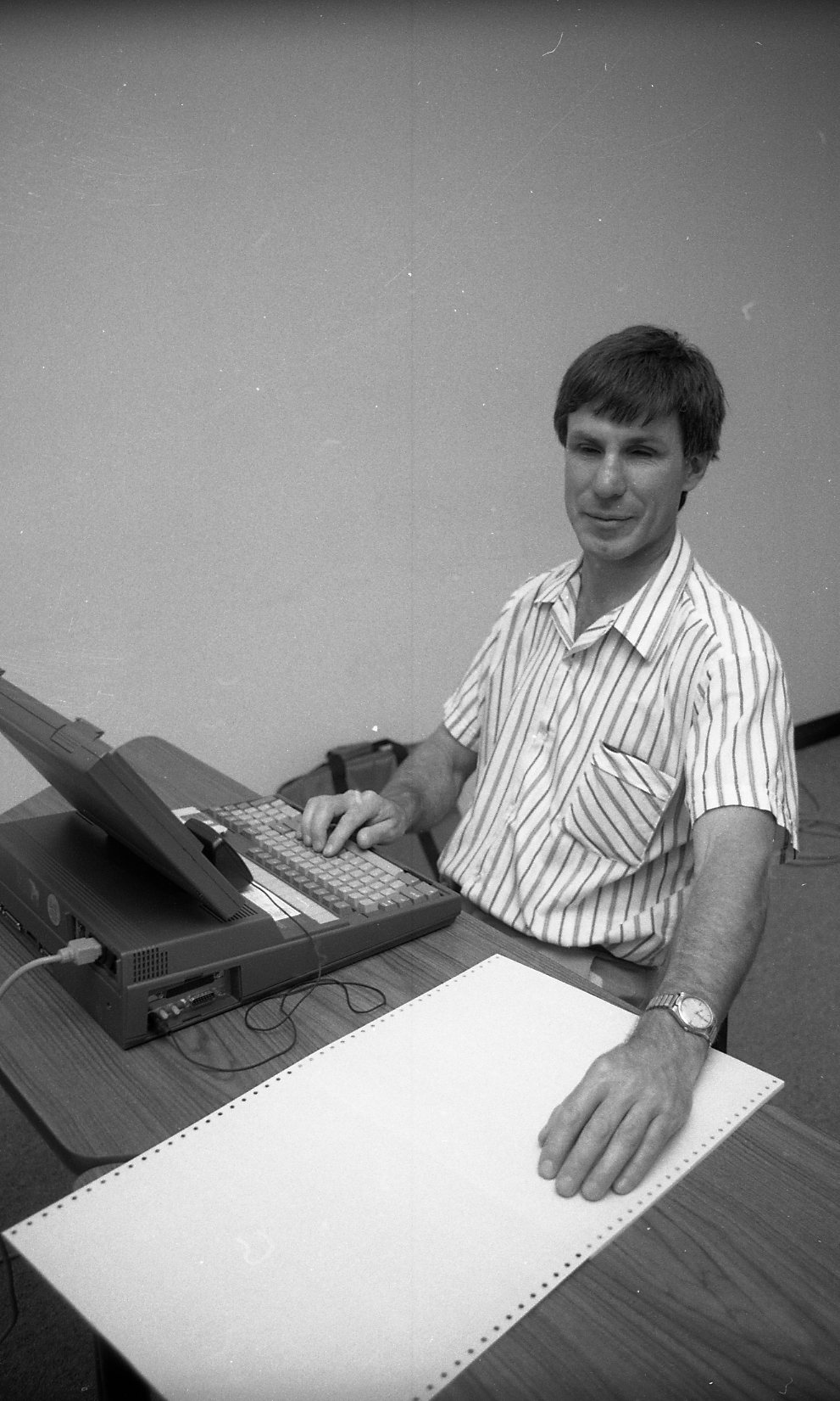 An unidentified man at a computer, the University of Newcastle, Australia - 1992