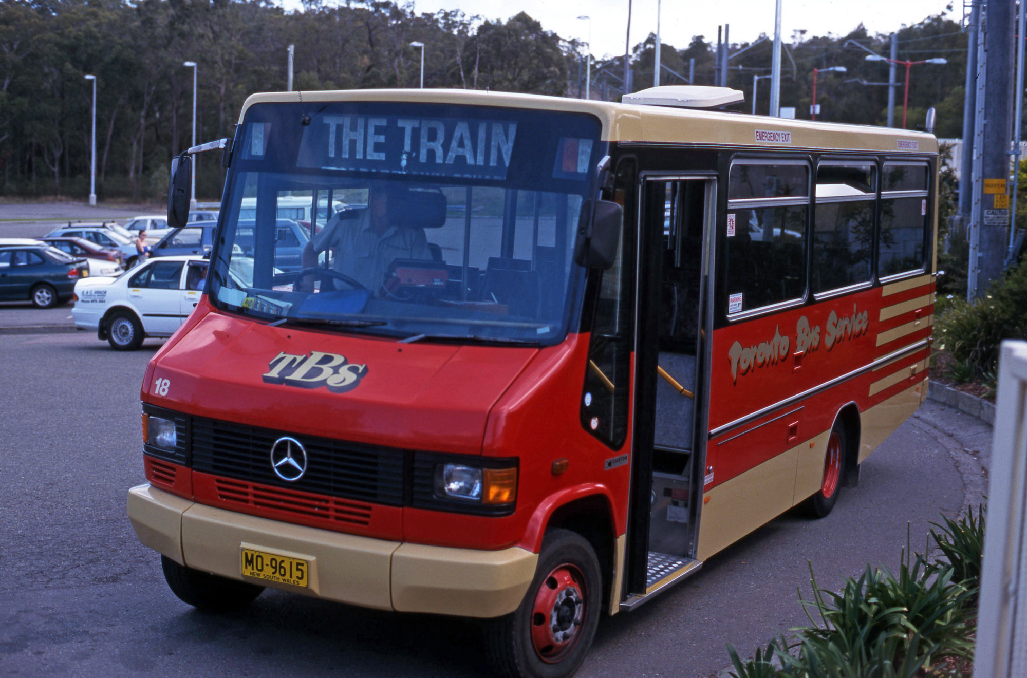 Toronto Bus Mercedes L0814 MO-9615 (18), off Fassifern Road at railway station, Fassifern, NSW, 4 November 2000