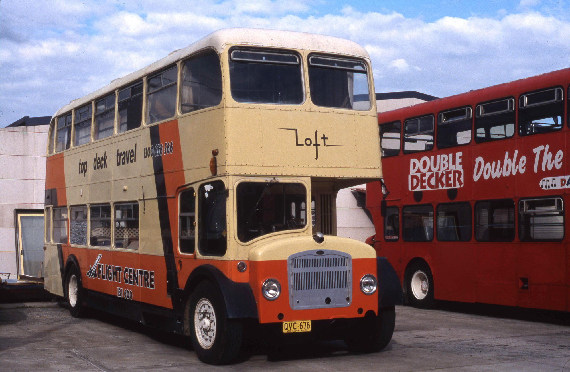 Top Deck Travel QVC-676 Bristol FLF, depot yard, East Gosford, NSW, 16 August 2003