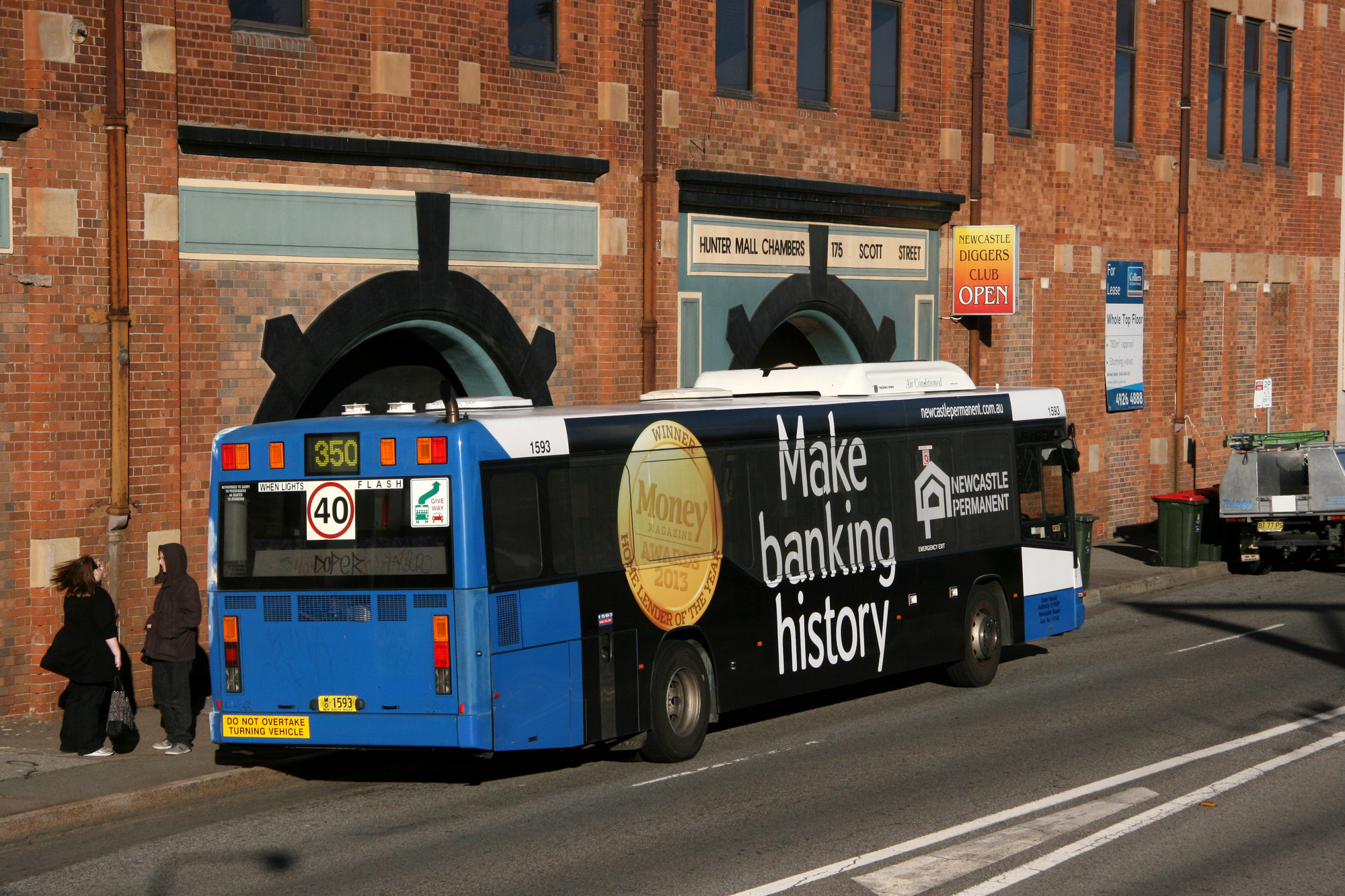 Ward, John, STA Volvo B12BLE 1593, Scott Street at Market Street, Newcastle, NSW, 6 August 2013 (6th August 2013), [36709_060813]. Living Histories, accessed 21/01/2026, https://livinghistories.newcastle.edu.au/nodes/view/91822