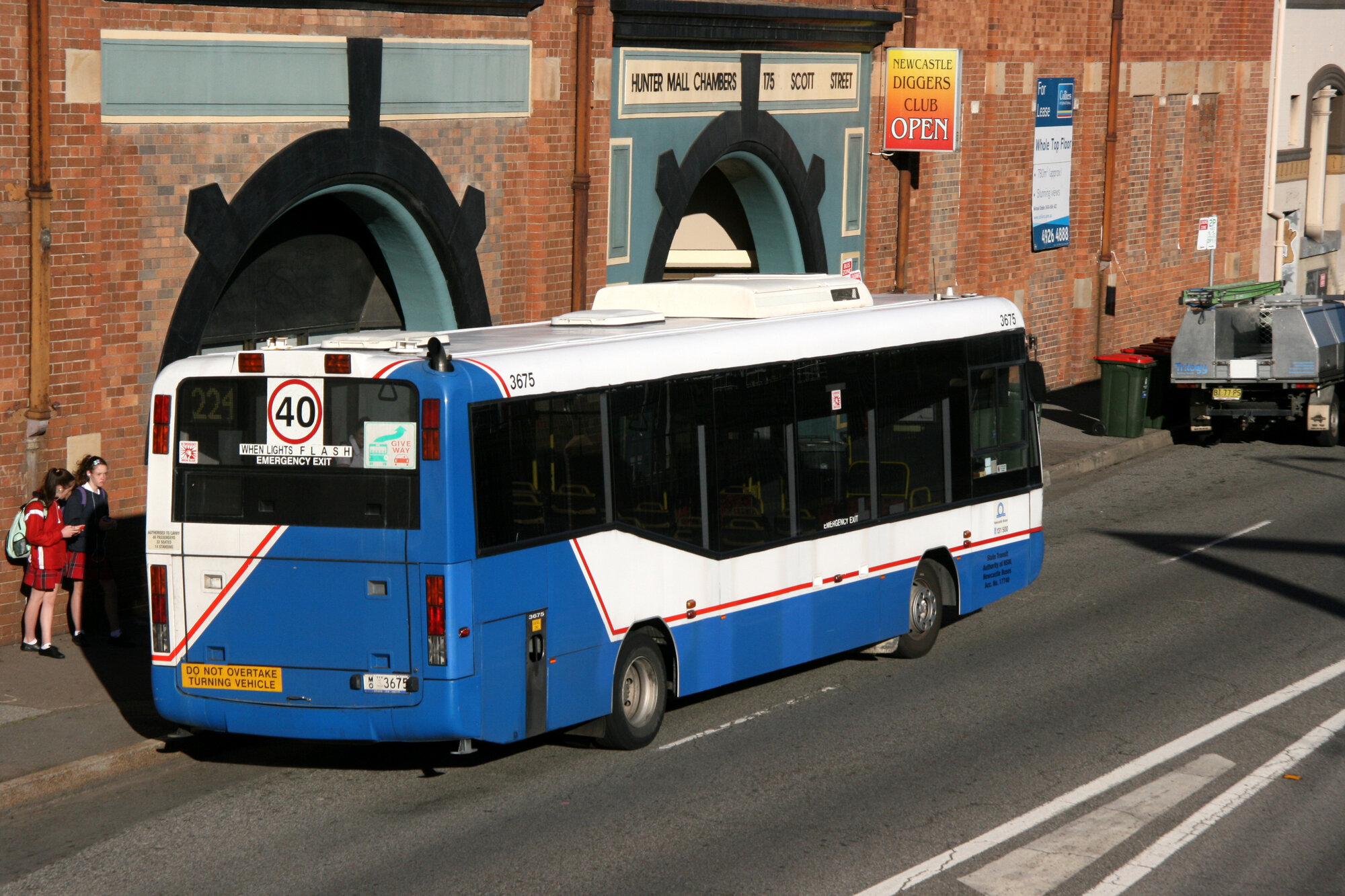 STA M.A.N 11.220 3675, Scott Street at Market Street, Newcastle, NSW, 6 August 2013