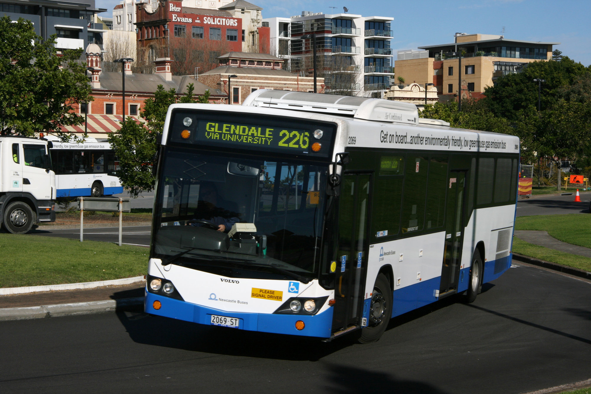 STA Volvo B12BLE 2069, Wharf Road at roundabout with Watt Street, Newcastle, NSW, 6 August 2013