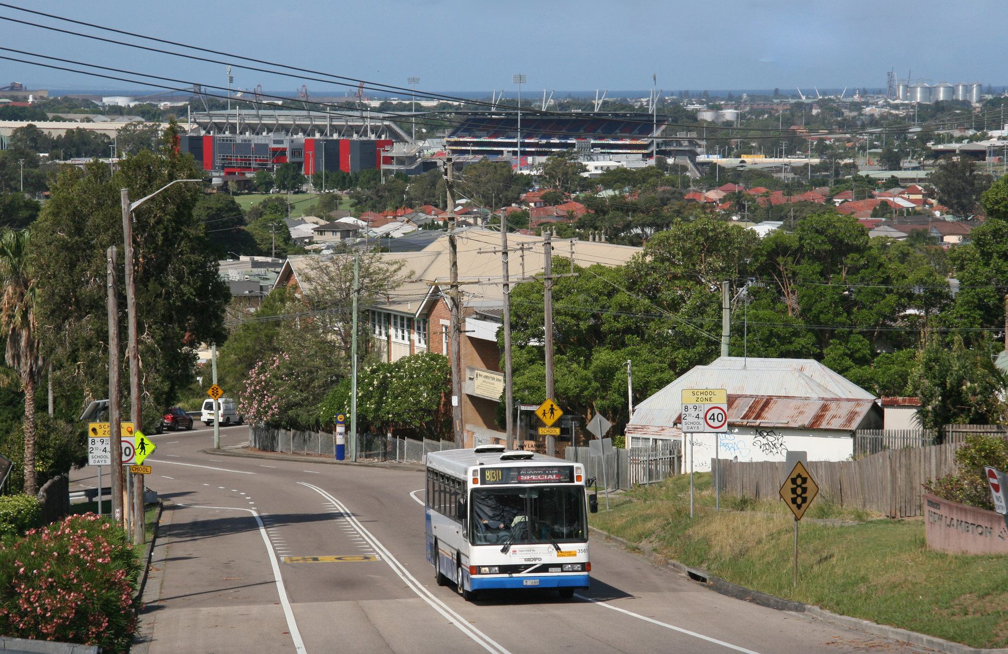 Ward, John, STA Volvo B10B 688 (3561) ex N&W, Rugby Road between Evescourt Road, & Russell Road, New Lambton, NSW, 15 November 2013 (15th November 2013), [37370_151113]. Living Histories, accessed 11/02/2026, https://livinghistories.newcastle.edu.au/nodes/view/92057