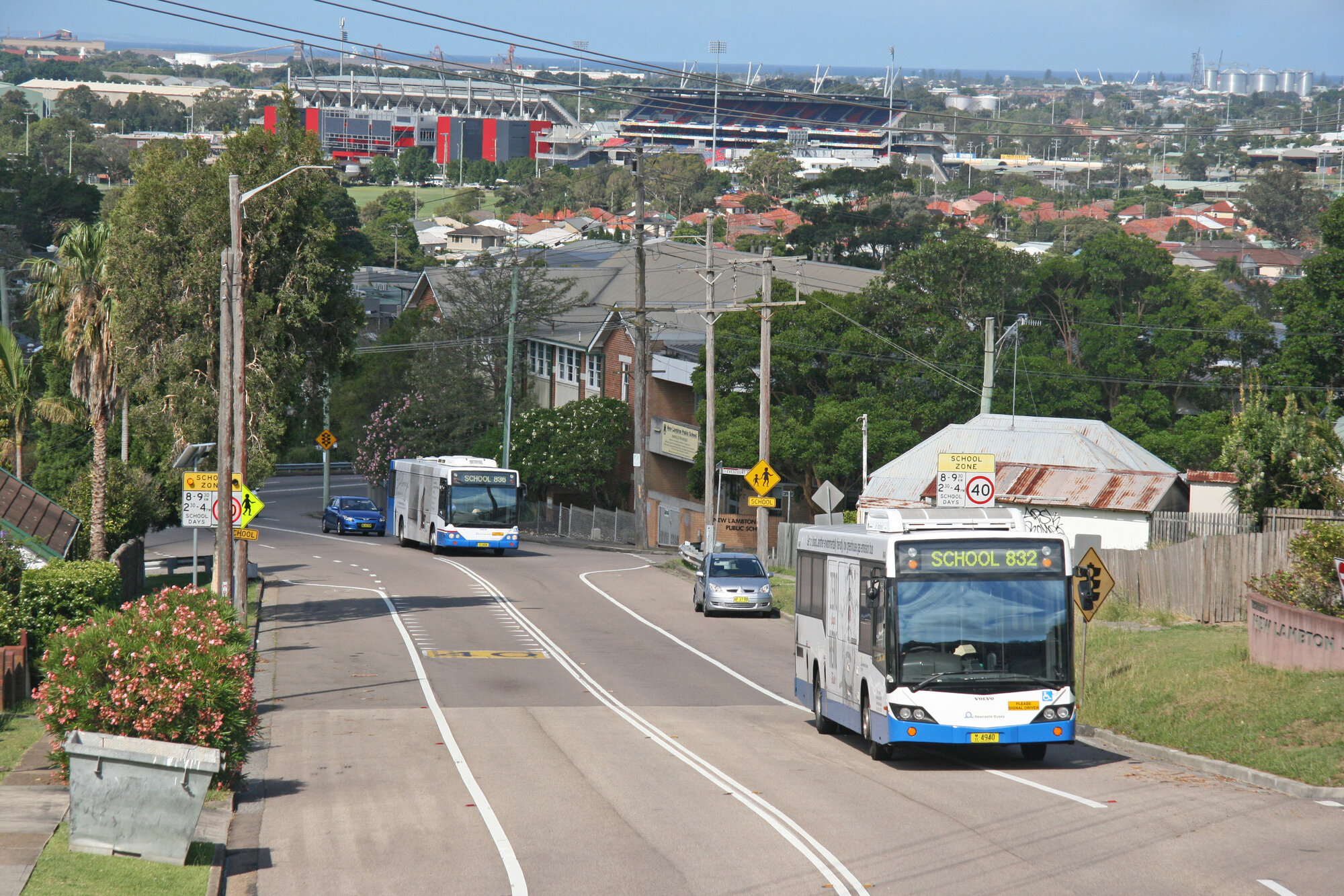 Ward, John, STA Volvo B12BLEs 4940, 1424, Rugby Road at Russell Road, New Lambton, NSW, 15 November 2013 (15th November 2013), [37379_151113]. Living Histories, accessed 14/01/2026, https://livinghistories.newcastle.edu.au/nodes/view/92066