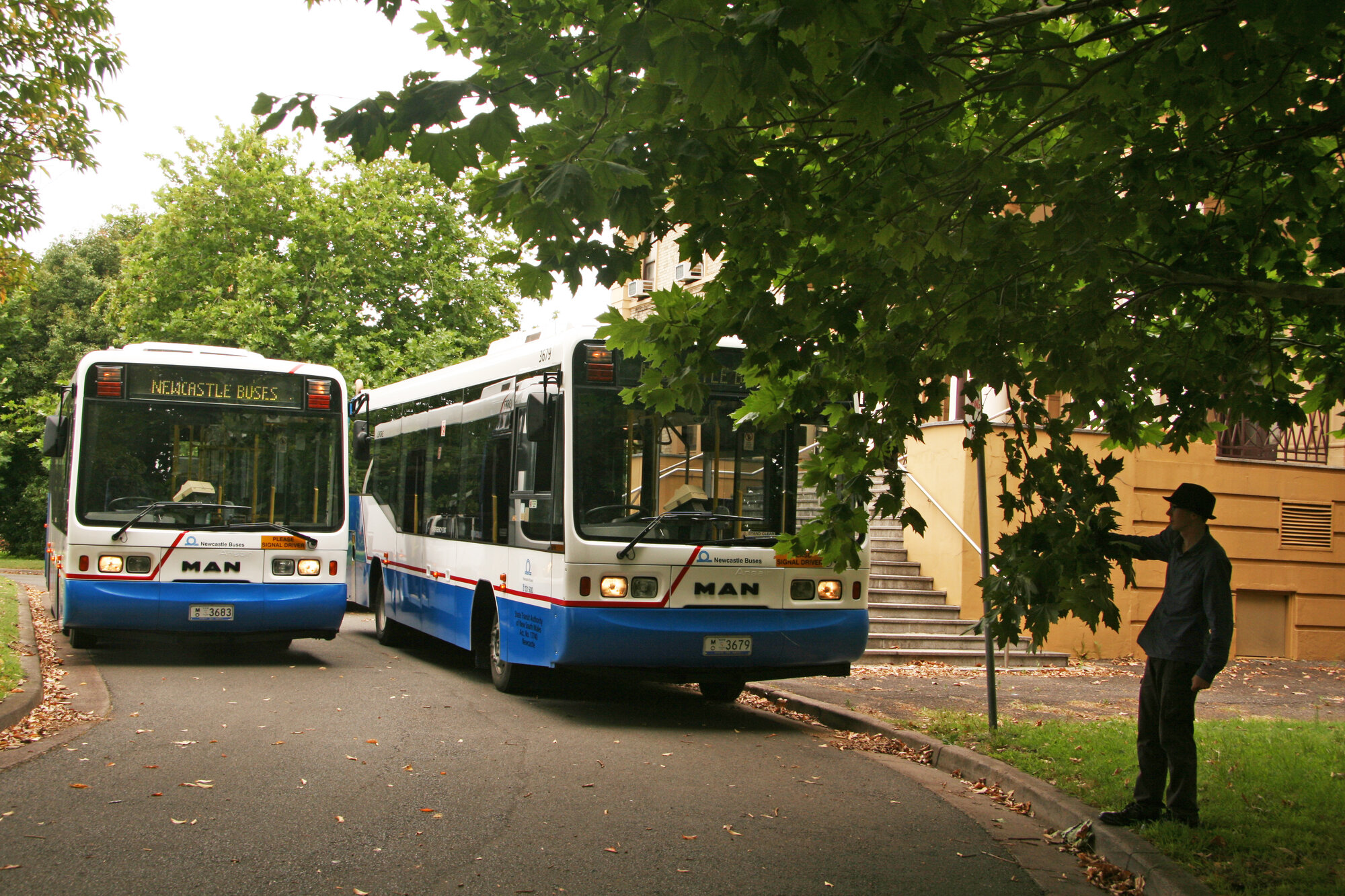 Ward, John, STA M.A.N 11.220s 3683 3679, Liam Brundle, Tour outside administration building off Administration Drive, Mayfield East, NSW, 16 November 2013 (16th November 2013), [37432_161113]. Living Histories, accessed 16/03/2026, https://livinghistories.newcastle.edu.au/nodes/view/92155